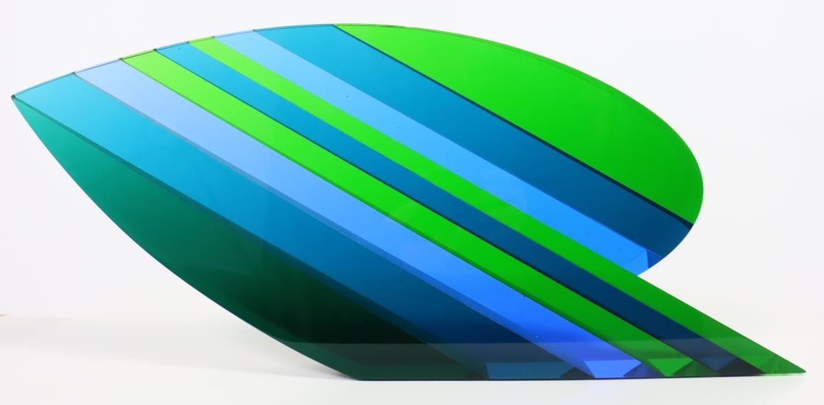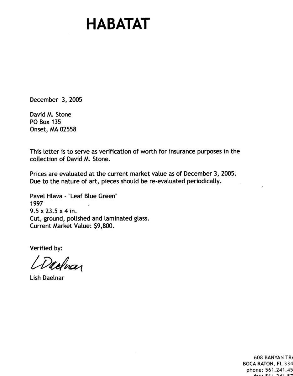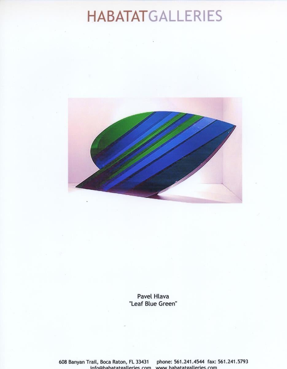 This is an exquisite piece of cut, ground, polished, and laminated glass. The piece was done by Pavel Hlava in 1997 and titled "Leaf Blue Green" This piece was purchased at Habatat Galleries in Boca Raton, Florida. Included are original documents and bill of sale from Habitat Galleries.
