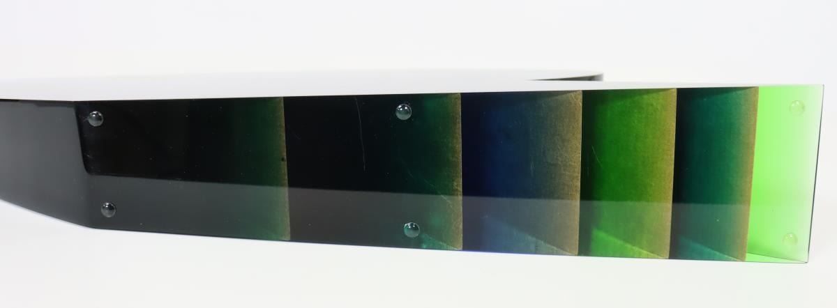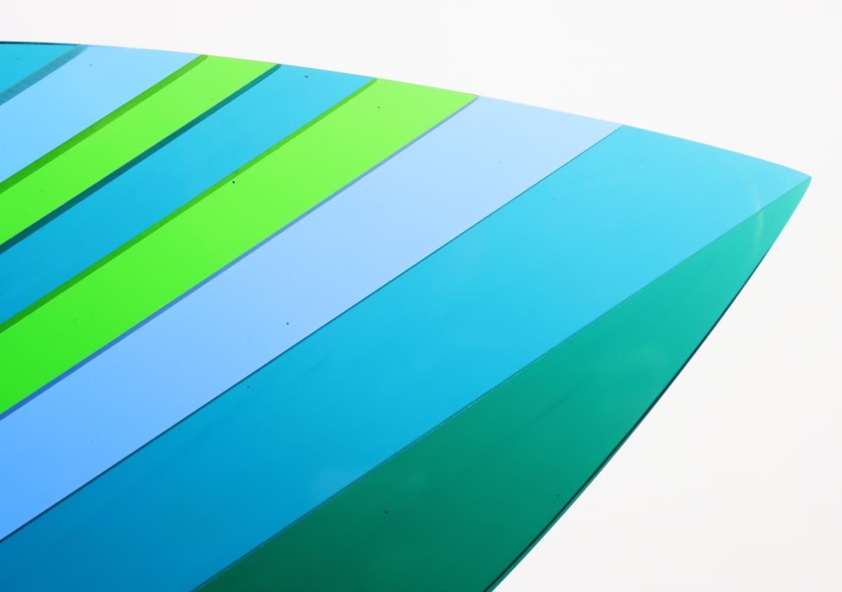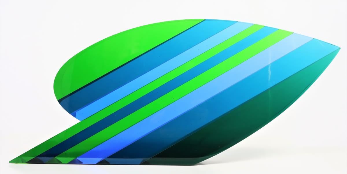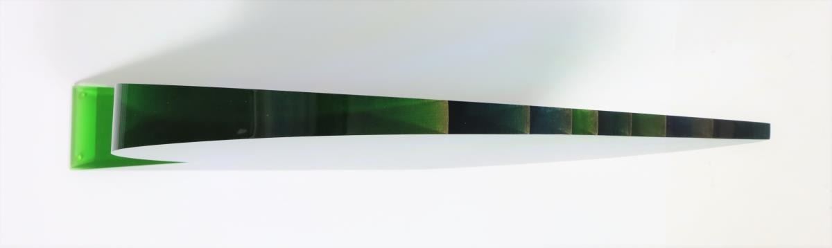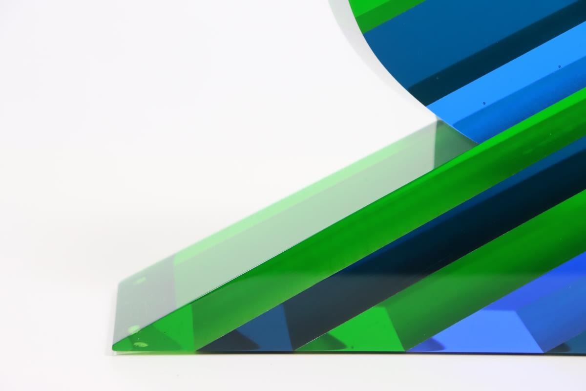 This is an exquisite piece of cut, ground, polished, and laminated glass. The piece was done by Pavel Hlava in 1997 and titled "Leaf Blue Green" This piece was purchased at Habatat Galleries in Boca Raton, Florida. Included are original documents and bill of sale from Habitat Galleries.