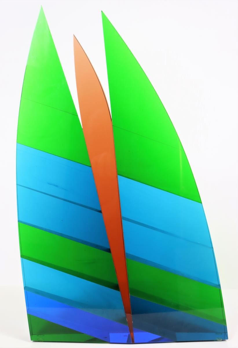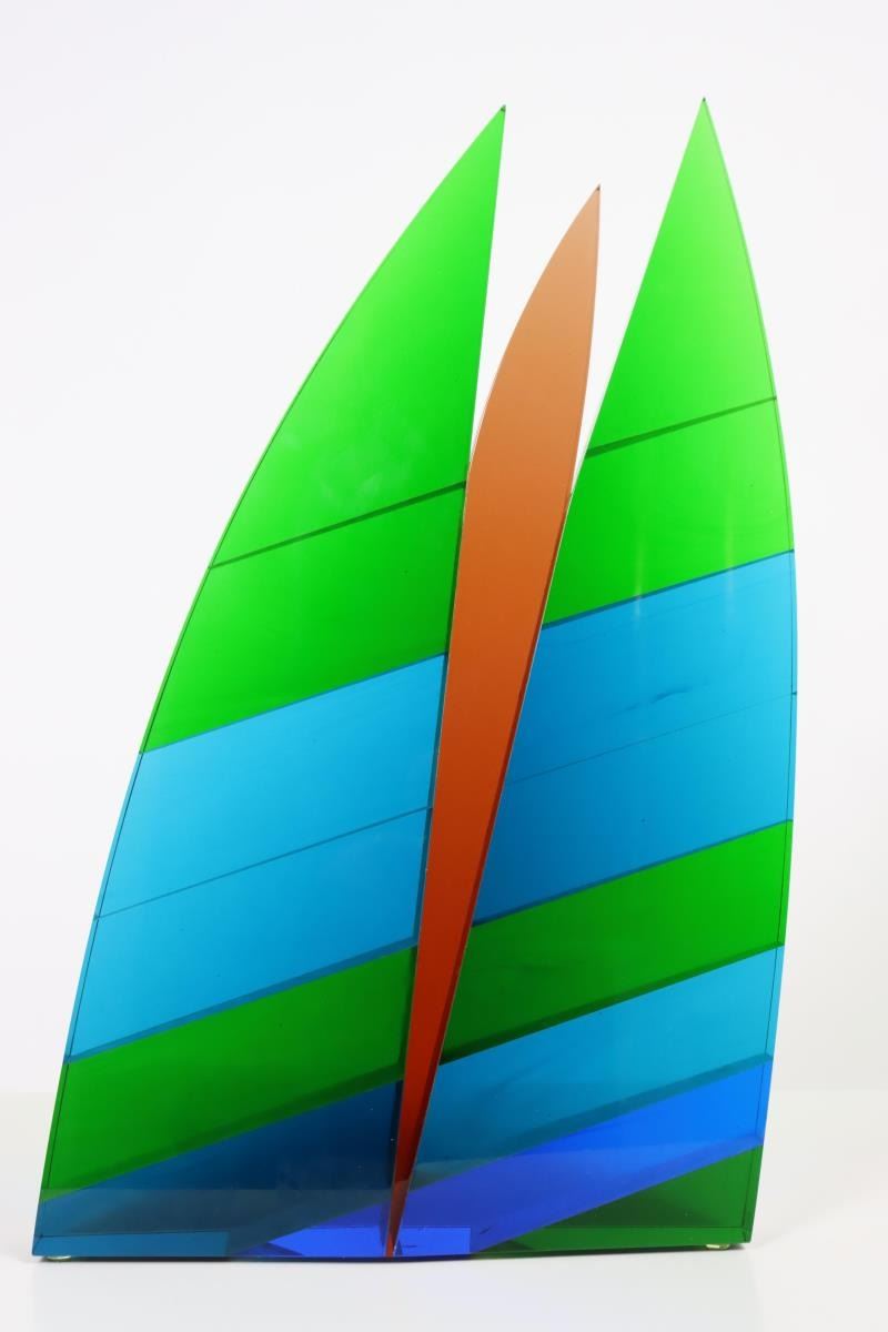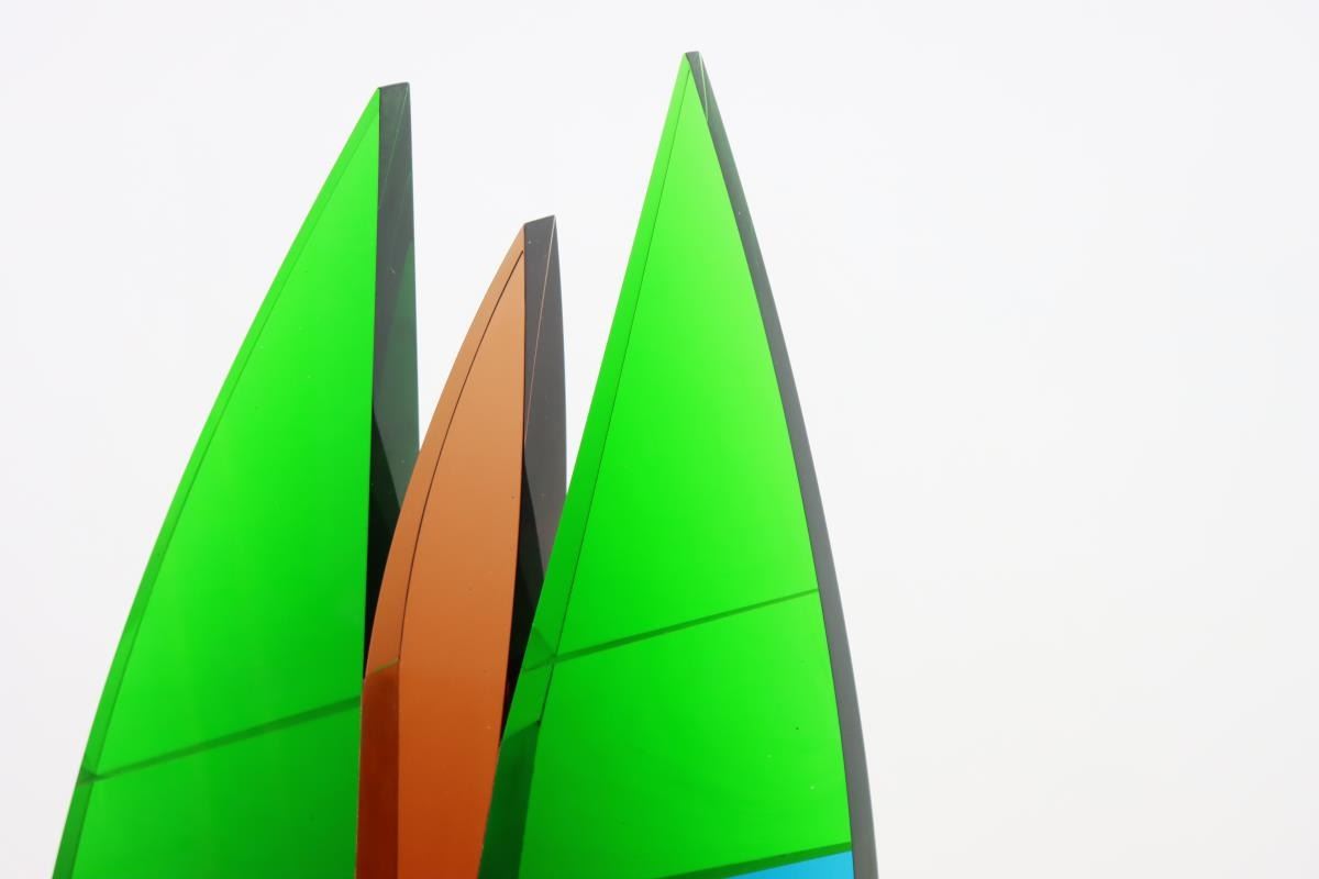 This is an exquisite piece of cut, polished, and laminated glass. The piece was done by Pavel Hlava and titled "Nature".