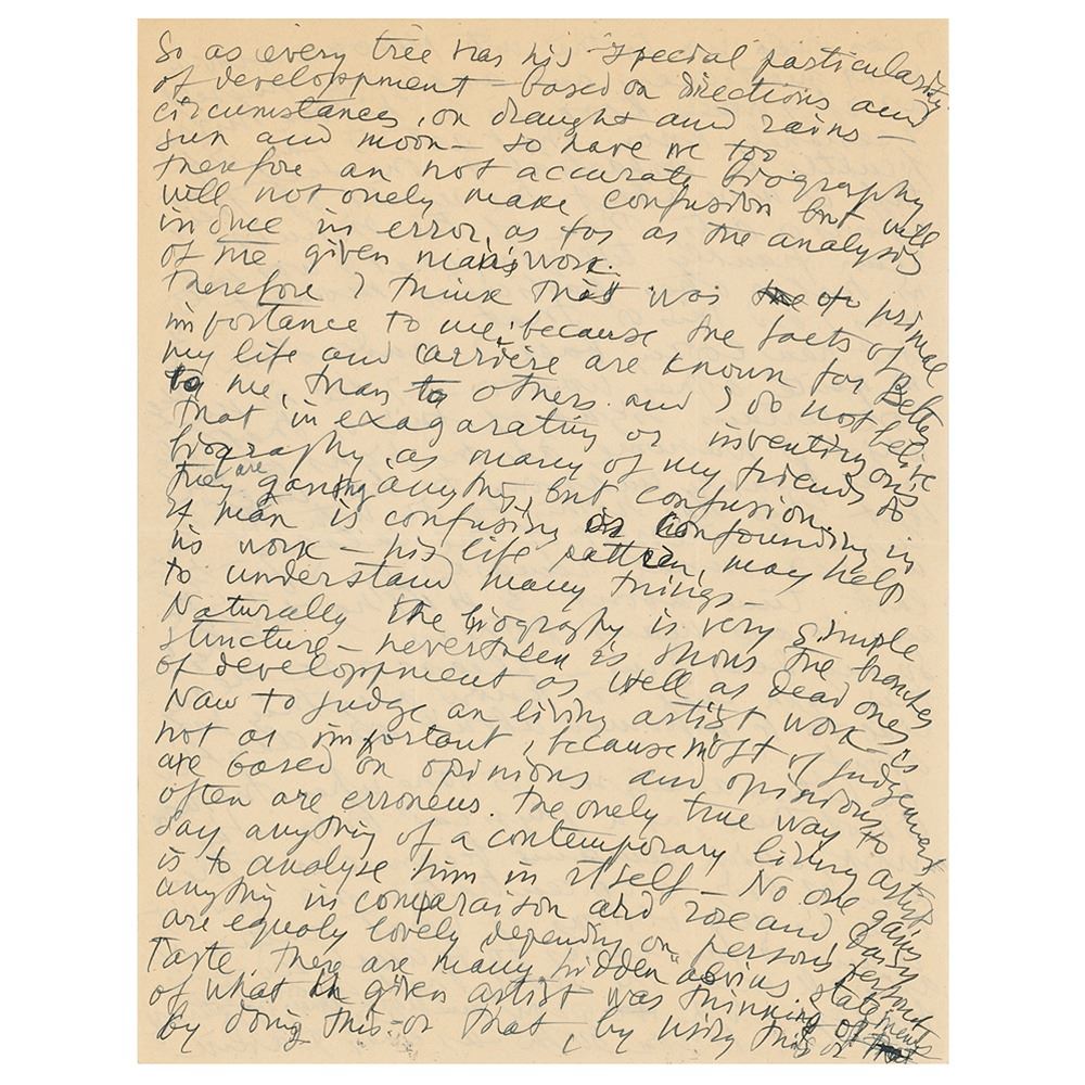 The reference to Lincoln is likely to his friend, Lincoln Kirstein (1907–96), a writer and New York cultural figure who is best known as founder of the New York City Ballet with Balanchine. Tchelitchew also painted Kirstein's portrait. Tchelitchew's most significant work is considered to be 'Hide and Seek,' painted between 1940 and 1942, the year of Soby's biography. The content of this letter suggests that Tchelitchew wanted to correct Soby's biographical portrait of him.