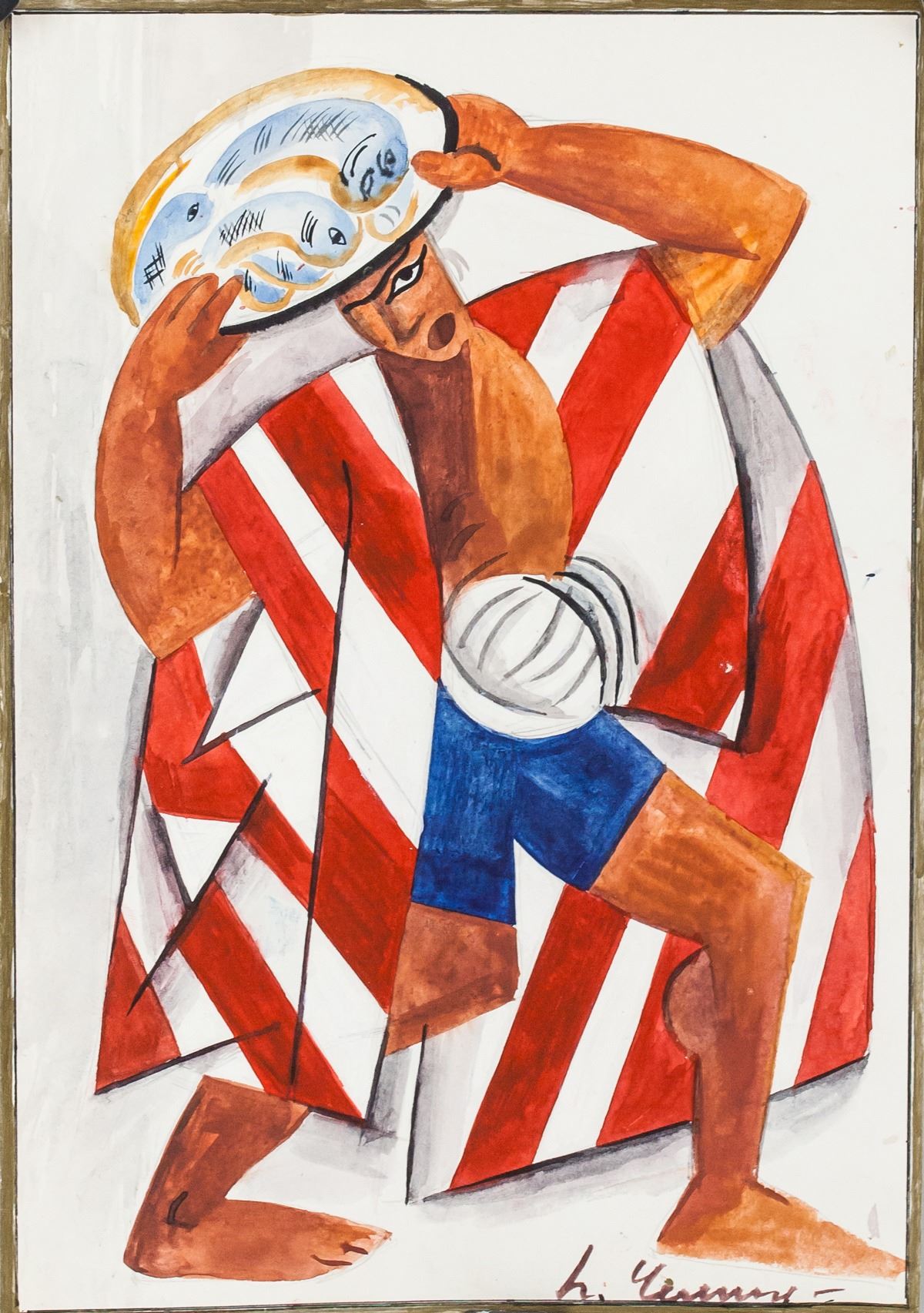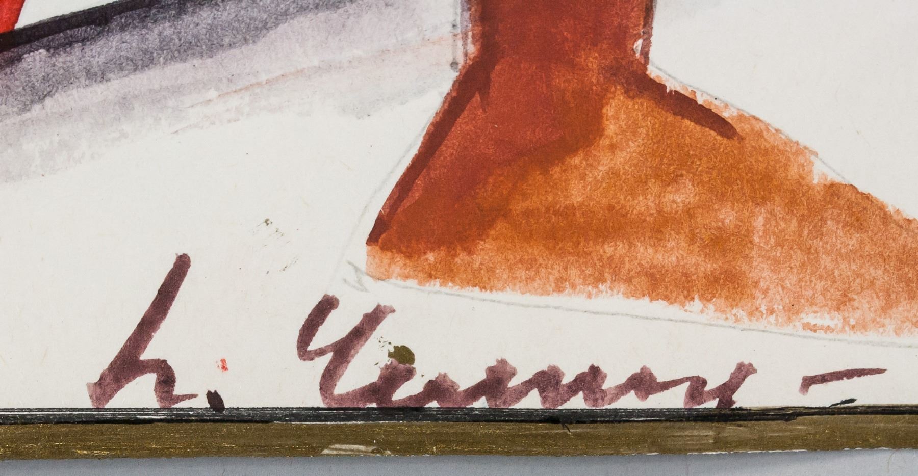 Gouache and graphite on paper. Featuring an abstract expressionist portrait. Signed in Cyrillic on the lower right corner. Stamped on verso. Attributed to Pavel Tchelitchew (1898-1957, Russian). 29 x 27 cm (11.5 x 8 in)