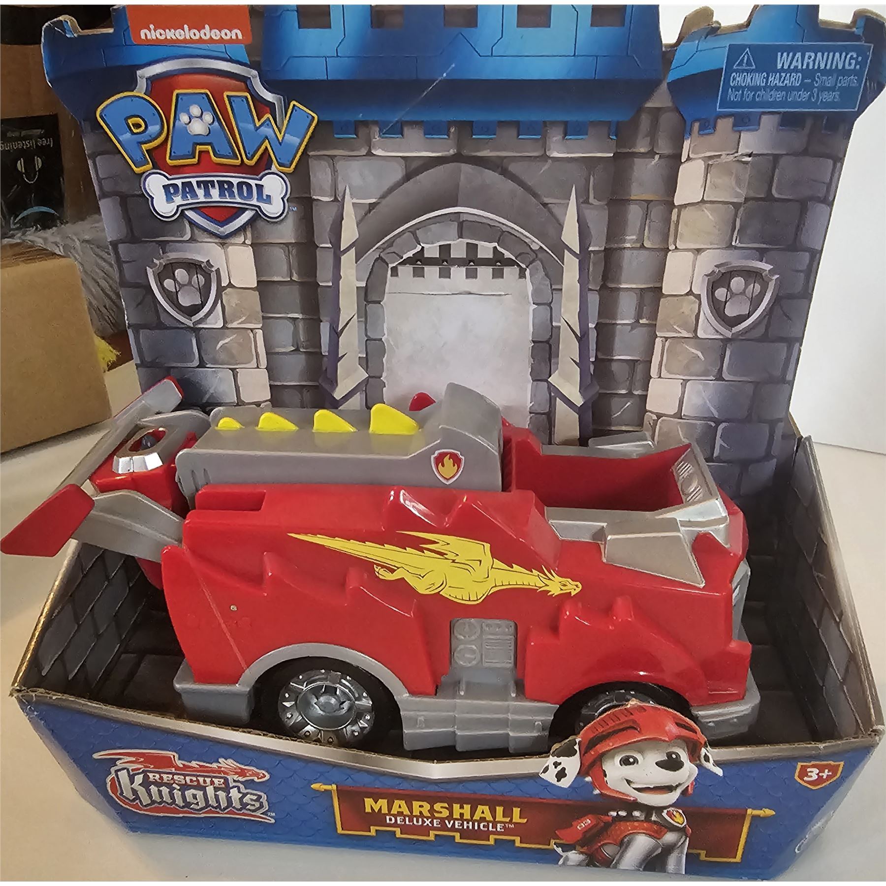 Transforming toy fire truck with dragon details and action figure, for ages 3+, new.