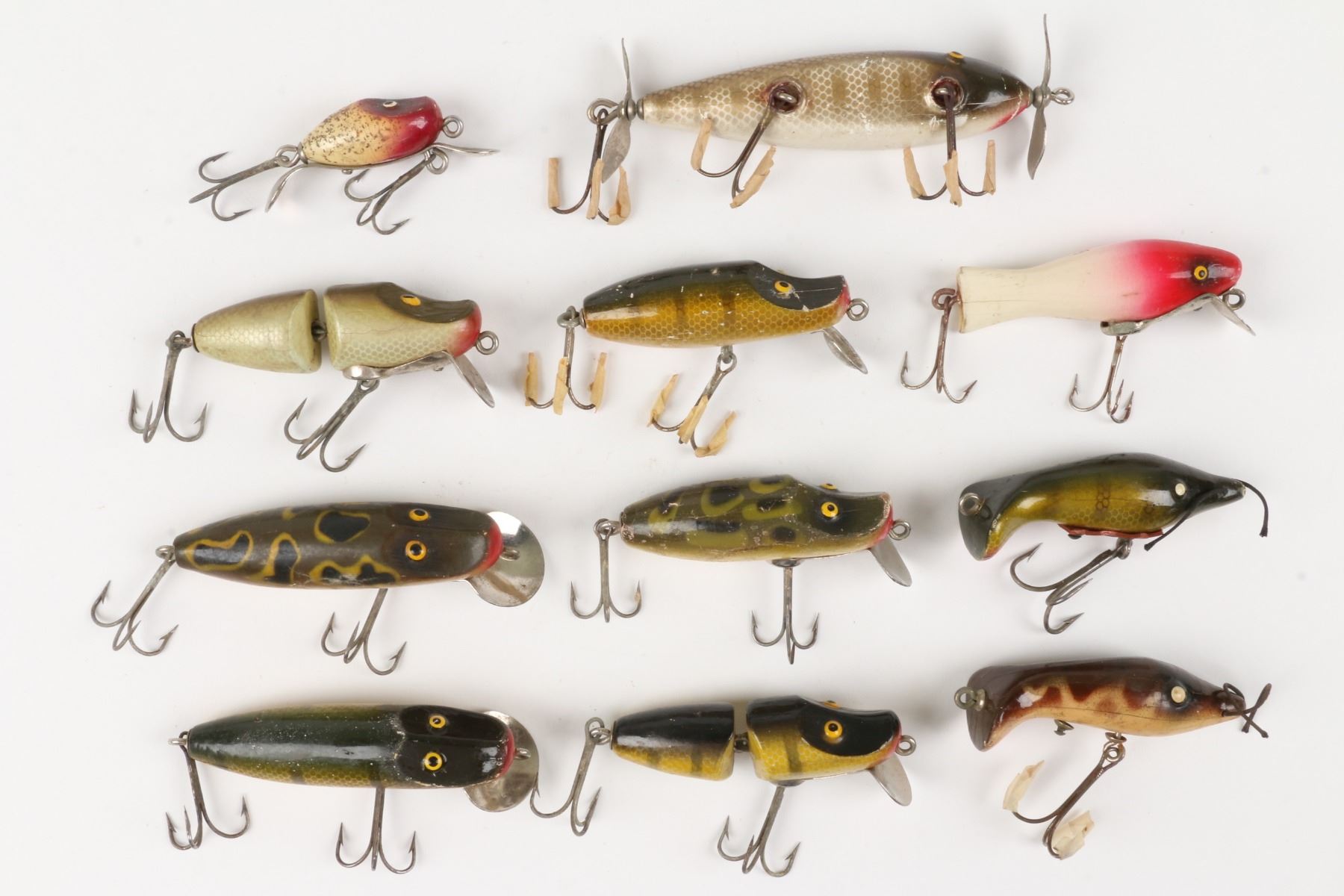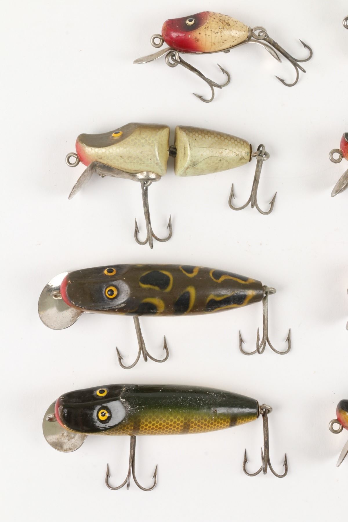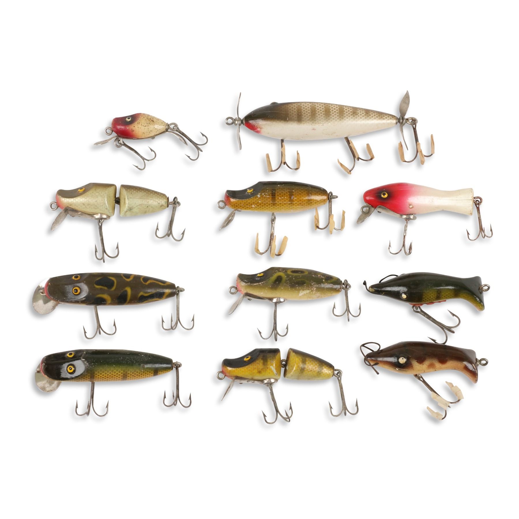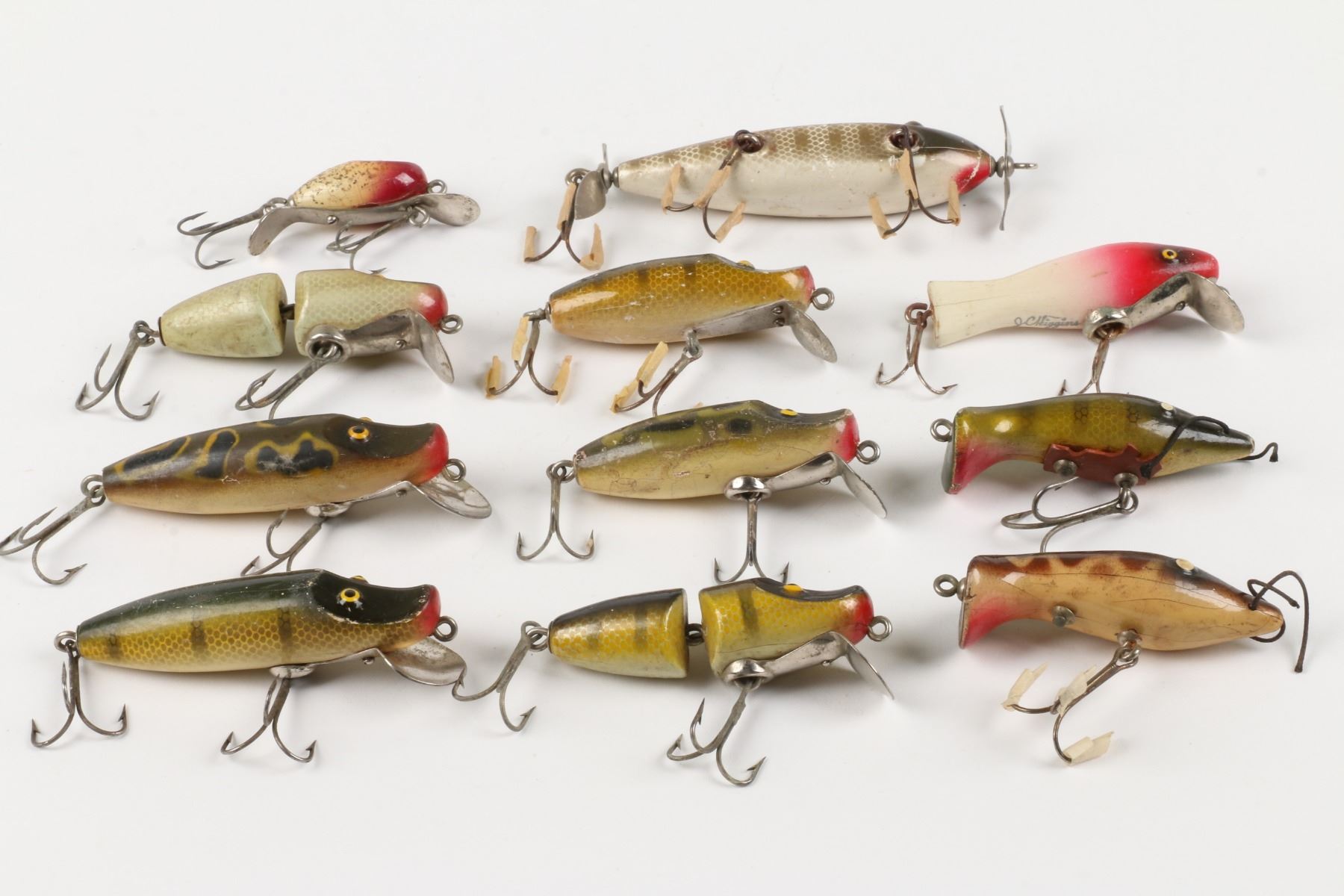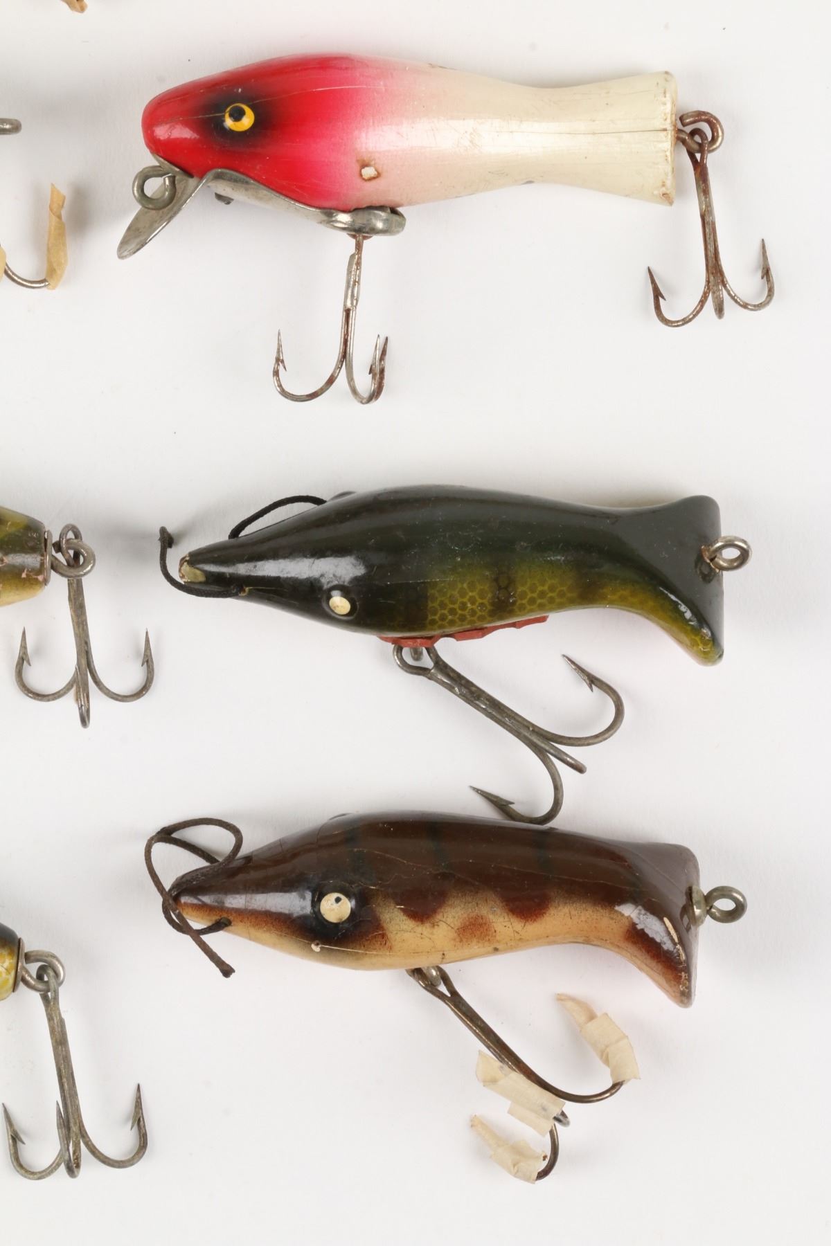 Paw Paw Bait Co., United States. Material: Wood. Quantity: 11. Grade: G-. 1.5" - 4" each. Est. $100-125.