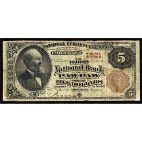 Paw Paw, MI. $5 1882 Brown Back. Fr. 468. The FNB. Charter #1521. Very Good.