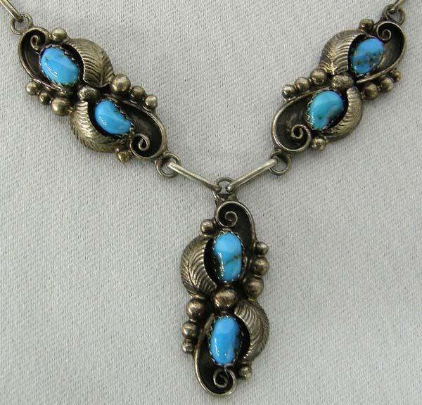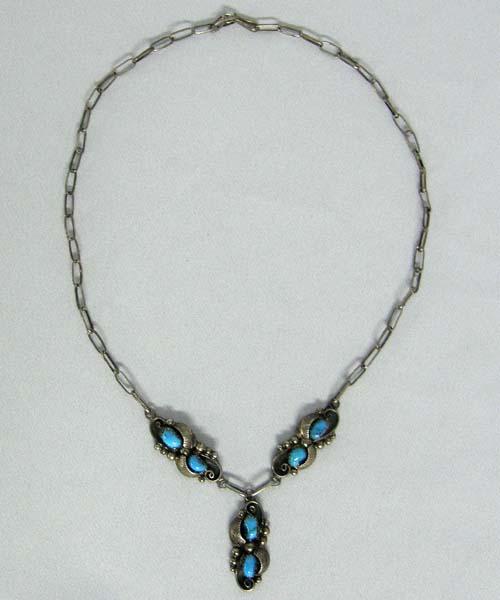 Pawn Navajo Silver Turquoise Necklace with Handmade Silver Chain. Measures approx. 17''L, pendant is approx. 1''L. SHI $15.