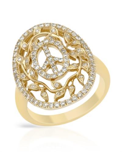 Peace sign w/ Leaves accent Diamond Ring in 14K Yellow Gold | 357360 6.5 Grams, featuring 0.64 ct 98 ct ct 14 ct