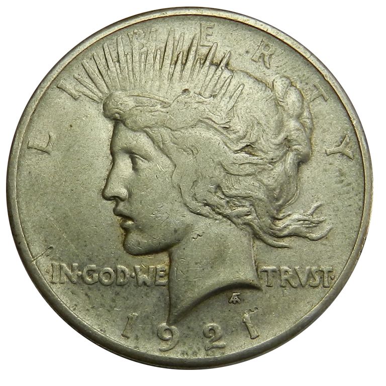Peace Silver Dollar, 1921, Key date. Toned VF, lt rb,cpl small mks.