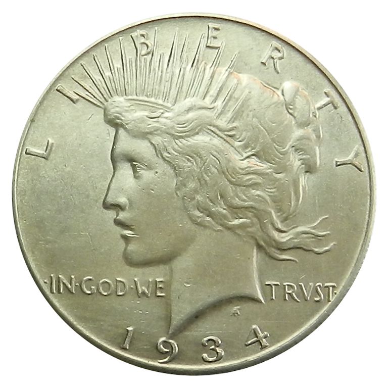 Peace Silver Dollar, 1934-S, Key date, Hairlined Unc, pleasing.