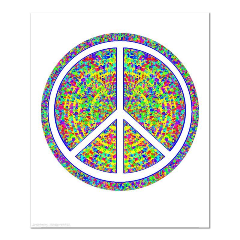 "Peace Spin" is a limited edition giclee on paper, numbered and hand signed by the artist. Includes Certificate of Authenticity. Measures approx. 16.5" x 18" (image). Please allow 5 additional business for items that include canvas stretch or framing.