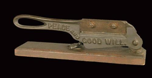 Peace and Goodwill Tobacco Cutter with Wood Base. Unusual Size. 10 inches long. Excellent Condition.
