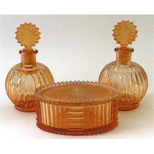 <tr><td>Title:Peach Depression Glass Perfume Bottles and Jar</td></tr>