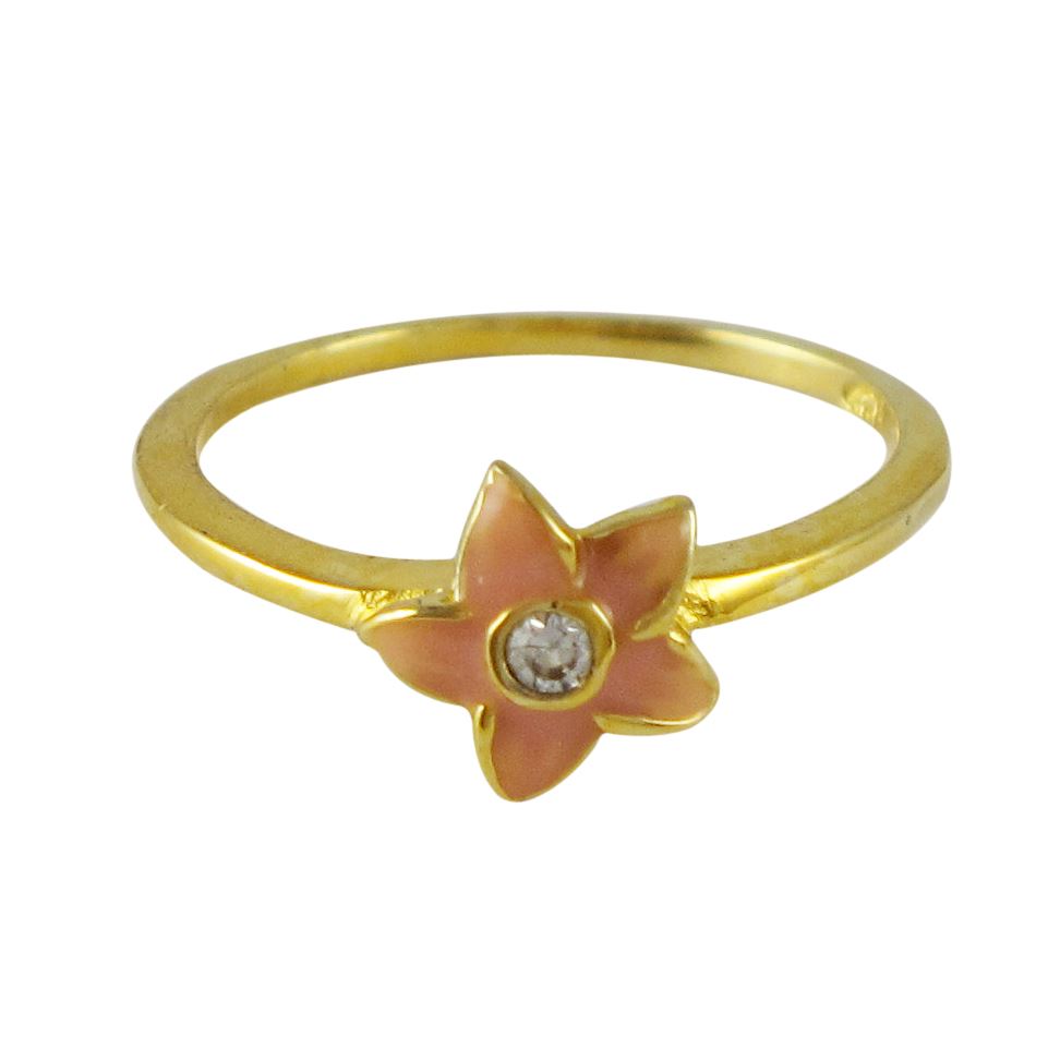Peach Enamel Star/Flower, Gold Tone Sterling Silver Ring Size 3