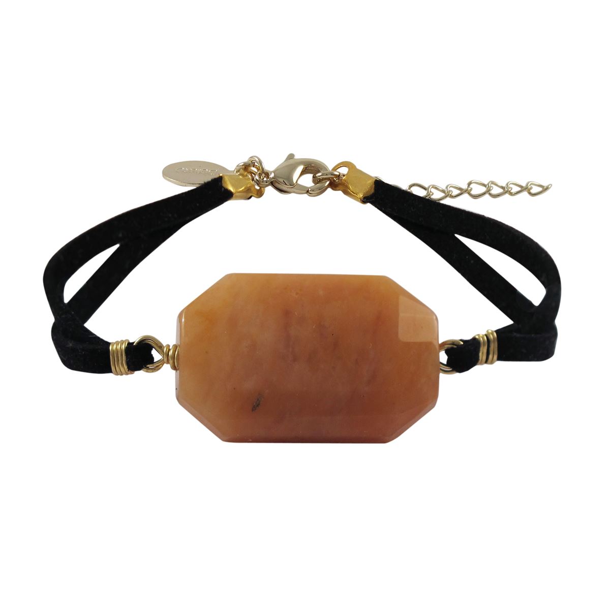 Peach Semi Precious Stone On Turquoise Suede Chain Bracelet, 7" 1"