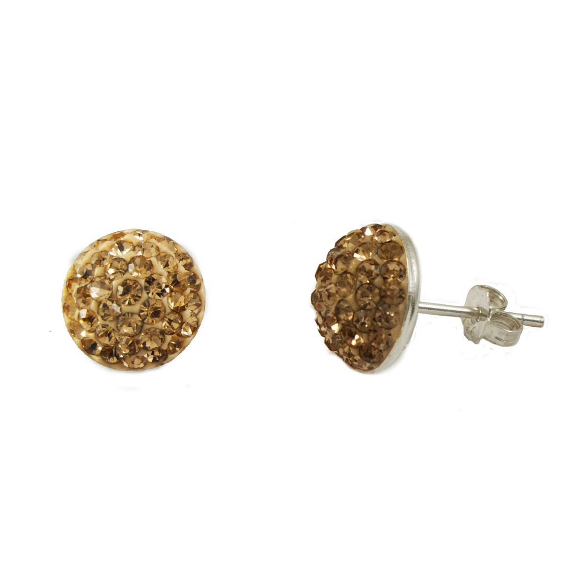 Peach Shamballa Half Ball 10Mm Earrings Sterling Silver Post