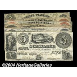 Peach State ObsoletesMacon, GA - Ocmulgee Bank $5 July 1, 1840 G6 VFMorgan, GA - Bank of Morgan $50 May 9, 1857 G18a Unc.Savannah, GA - Bank of Commerce $20 Sept. 2, 1861 G10cSavannah, GA - Farmers and Mechanics Bank $1 June 1, 1860 G2a FineSavannah, GA - Merchants and Planters Bank June 24, 1857 G2b Fine; $1 June 1, 1859 G2c AU; $2 June 1, 1859 G4c Fine; $3 Dec. 1, 1856 G6a Fine 8 notes <BR><BR><B>Important notice:</B> Heritage usually auctions material at the rate of 200-250 lots per hour. On some occasions eBay Live bid software or the Internet may not be able to keep up with the pace of the auction. We recommend placing a realistic absentee bid now as insurance to avoid disappointment. Occasionally the auctioneer may eliminate or reject an eBay Live bid, and the auctioneer may also reopen a lot after the close of the eBay live bidding (usually because we missed an audience bid), and may reject your bid even if it shows you as the winning bidder. By bidding via eBay Live, you agree that Heritage may award the lot to another bidder at its sole discretion under the circumstances described above or any other reasonable circumstances. Since eBay bids are not shown to us until we open the lot on the floor, we treat those bids just like floor bids. In most cases the floor responds before the eBay bid is presented to us, due to Internet lag time, so for consistency we have made it a policy that floor bids are always considered first over tie eBay live bids. Also please note that all Heritage lots purchased through eBay Live carry a 20% Buyer's Premium. Please make sure you read the Terms and Conditions before you bid. <BR><BR><B>IMPORTANT ANNOUNCEMENT ABOUT RESERVES:</B> Heritage now divulges all reserves on its web site 7 days before every auction. If you want to know whether the reserve on this lot has been met, and if not, what the reserve amount is, please visit this lot page on the HeritageCoin.com web site, or email: bid@HeritageGalleries.com