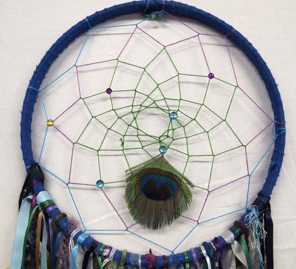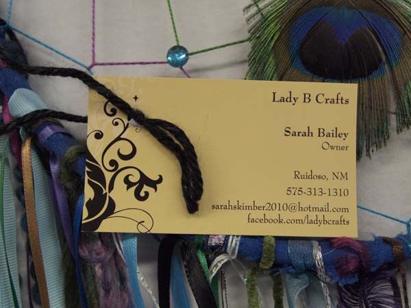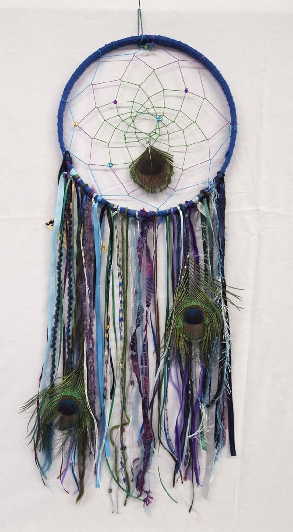 Peacock Blue Dreamcatcher by Lady B Crafts of Ruidoso NM, hoop measures 11''D, beautiful colors