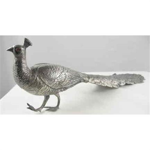 A Fabulous large white metal silver plated peacock perfume container c1950. Made by the CS Co. #112 The head unscrews. Red Crystal eyes. Ver Different!!