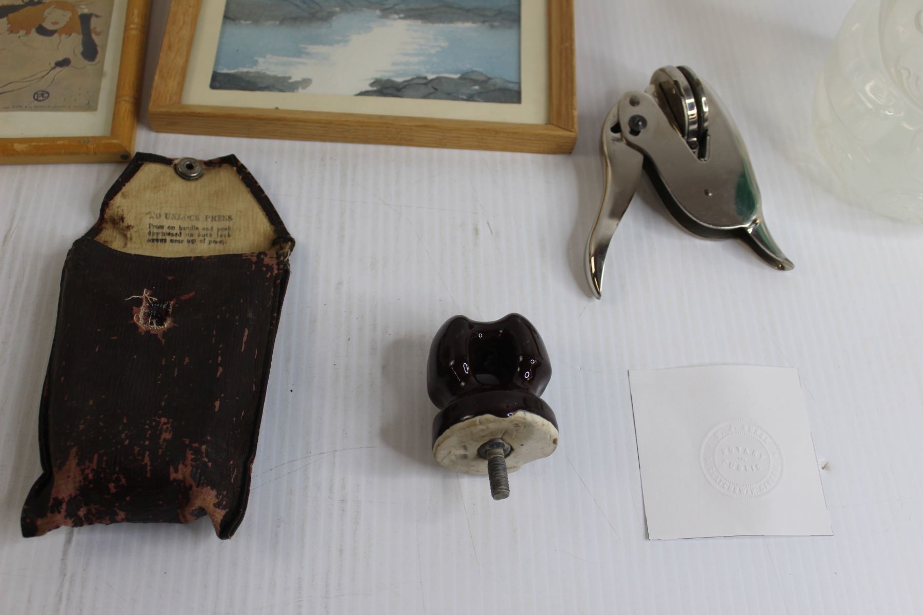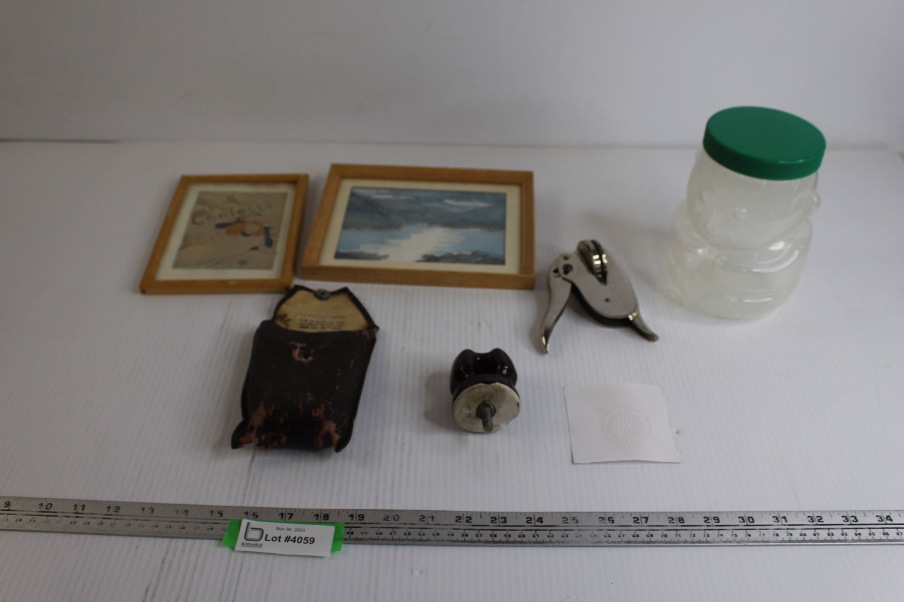Peanut Butter Bear Jar, (2) Framed Pictures, Misc.
