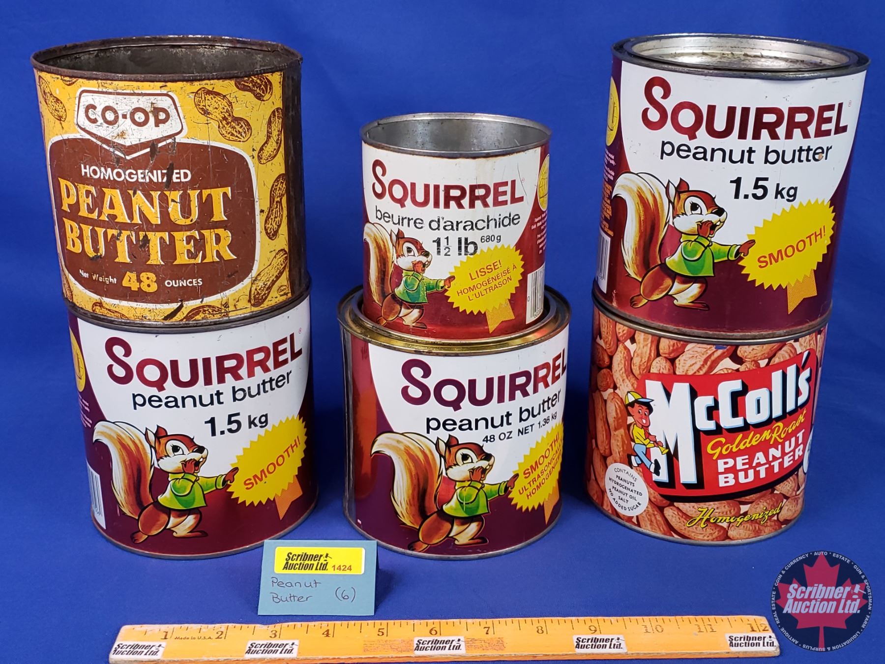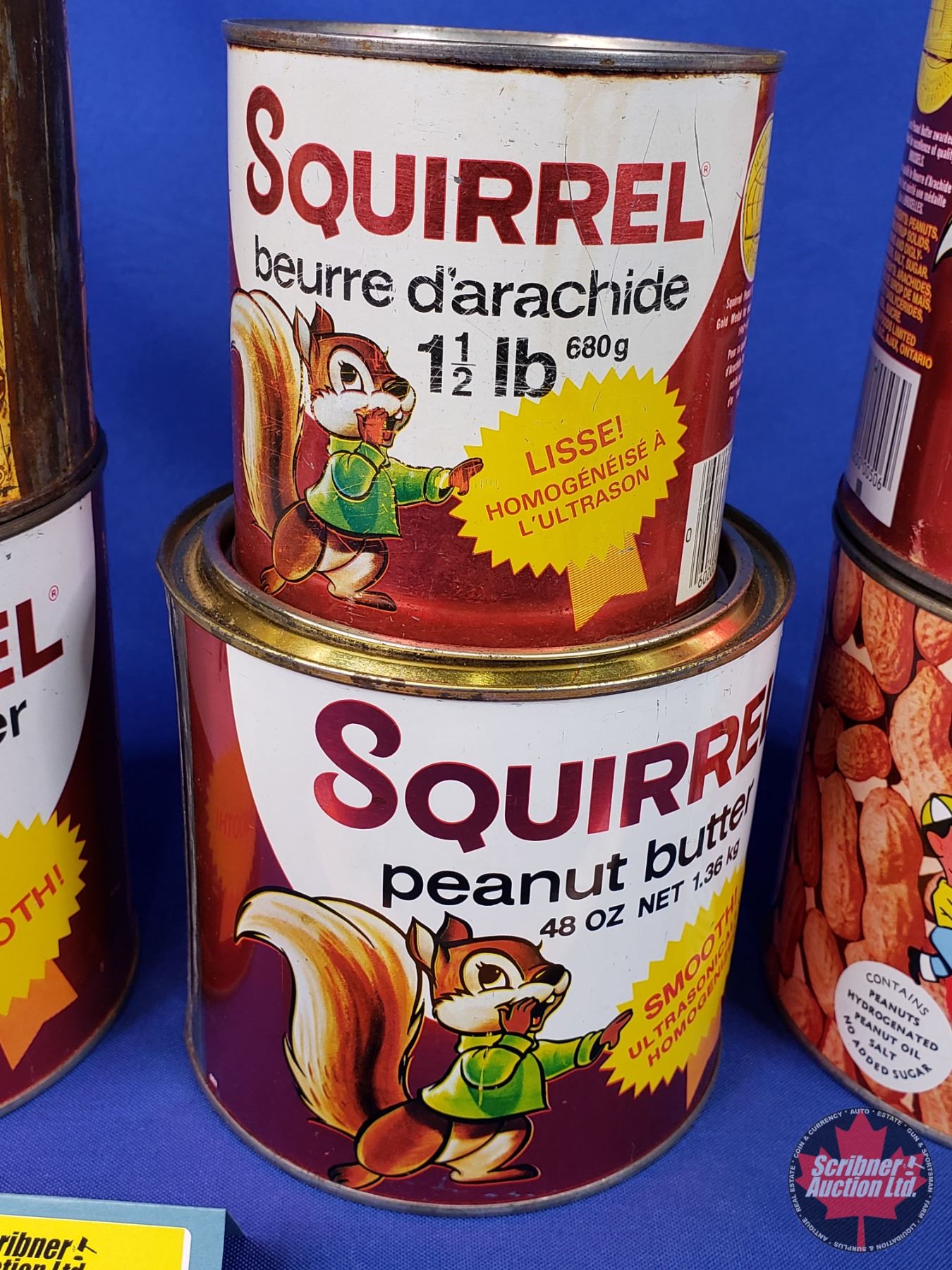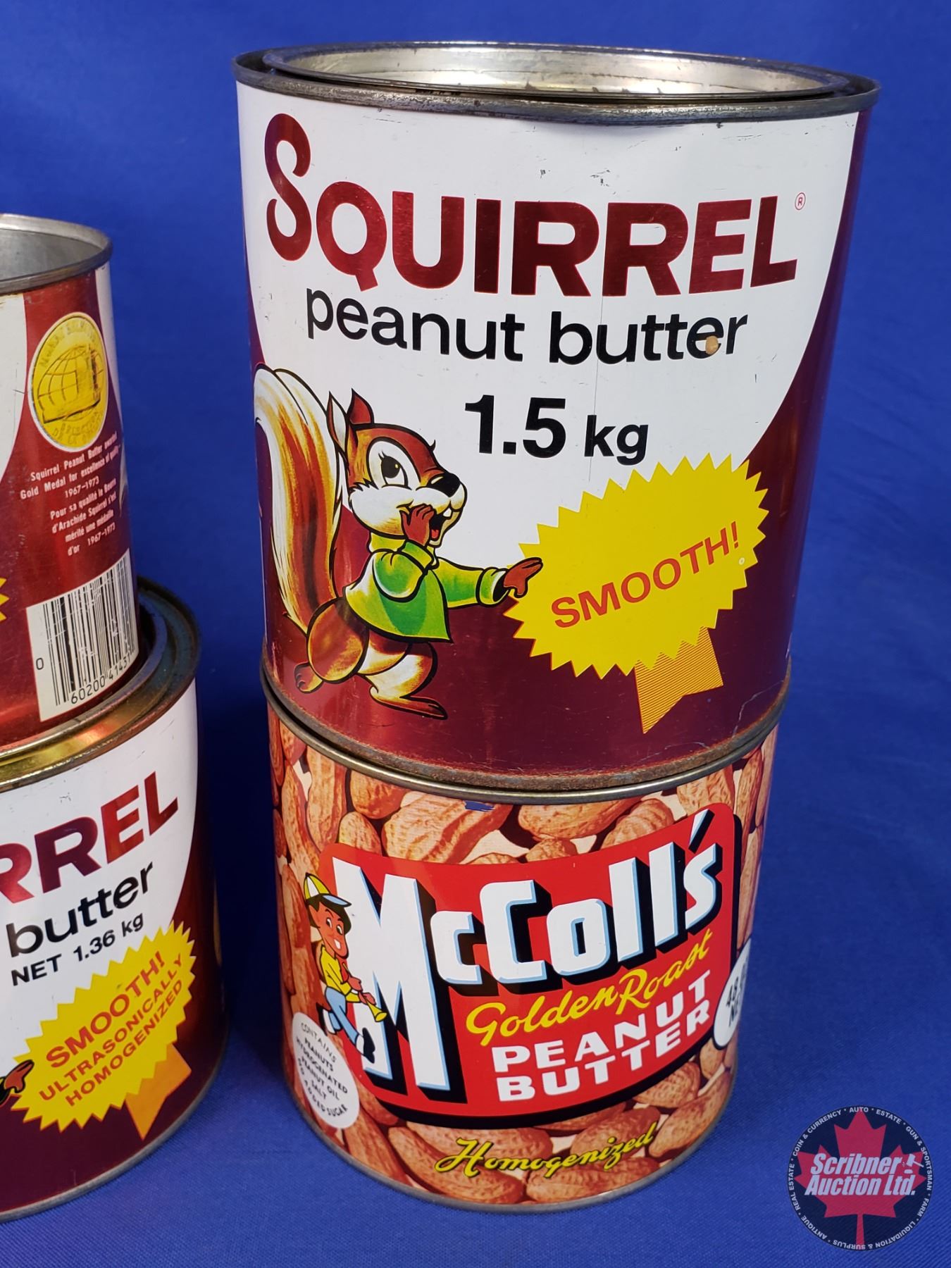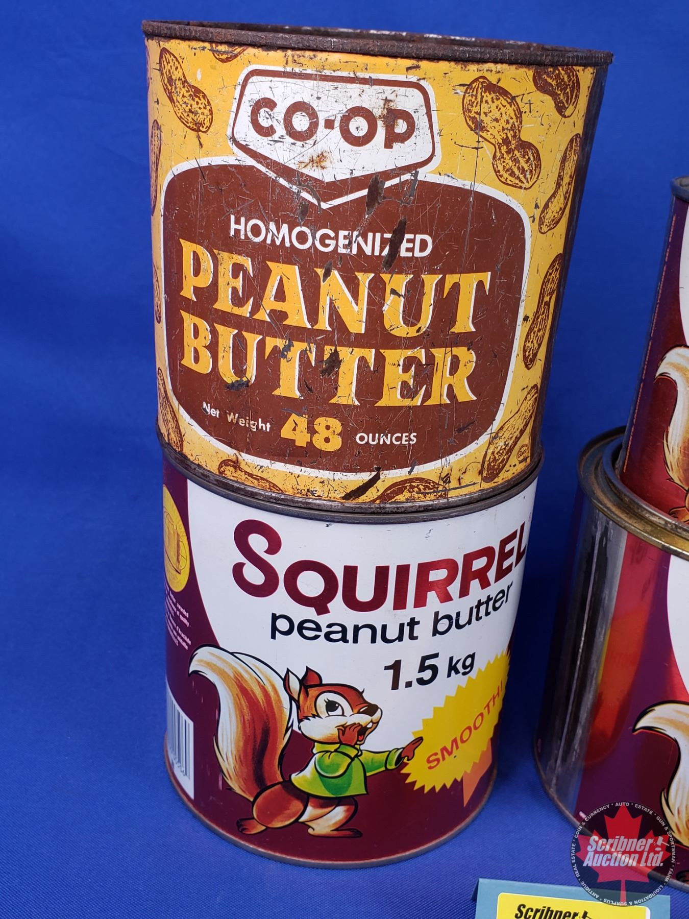 Peanut Butter Tin Collection - Variety (6) (Larger Tins 5-1/4"H x 5"Dia) (Incl. Co-Op ; Squirrel & McColl's) (SEE PICS!)