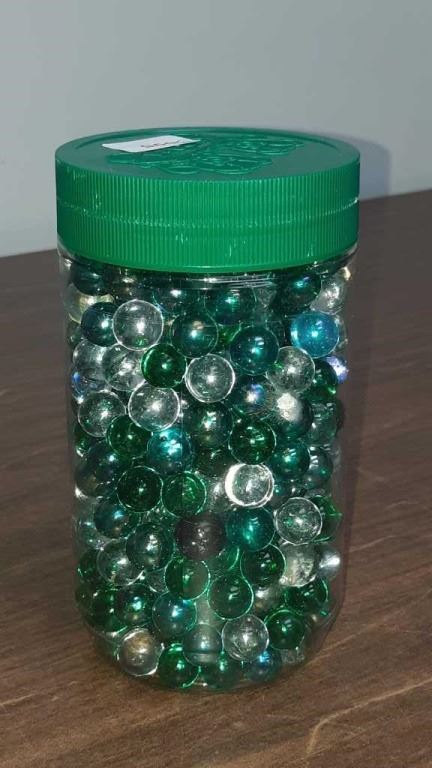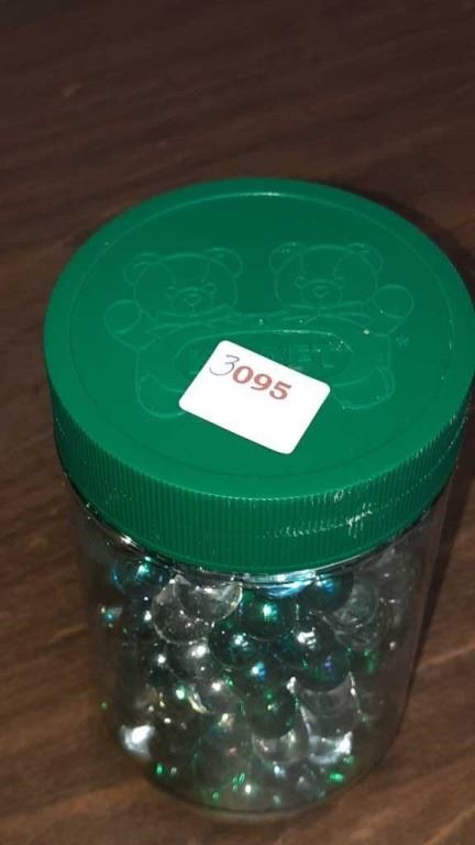 Peanut butter Jar full of marbles 3.5" by 6.5"