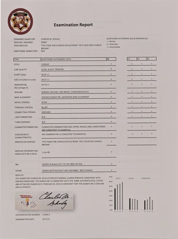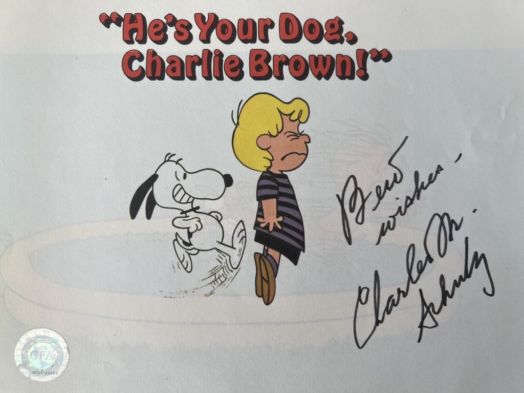 Peanuts Charles Schulz signed book page GFA authenticated. 7x8 inches. PSJ87