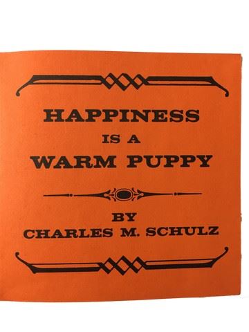 "Peanuts" "Happiness Is A Warm Puppy" book by Charles Schulz copyright 1962. (5"x5")