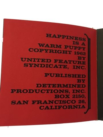 "Peanuts" "Happiness Is A Warm Puppy" book by Charles Schulz copyright 1962. (5"x5")