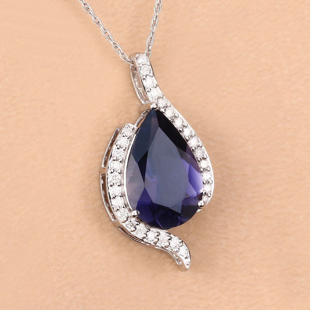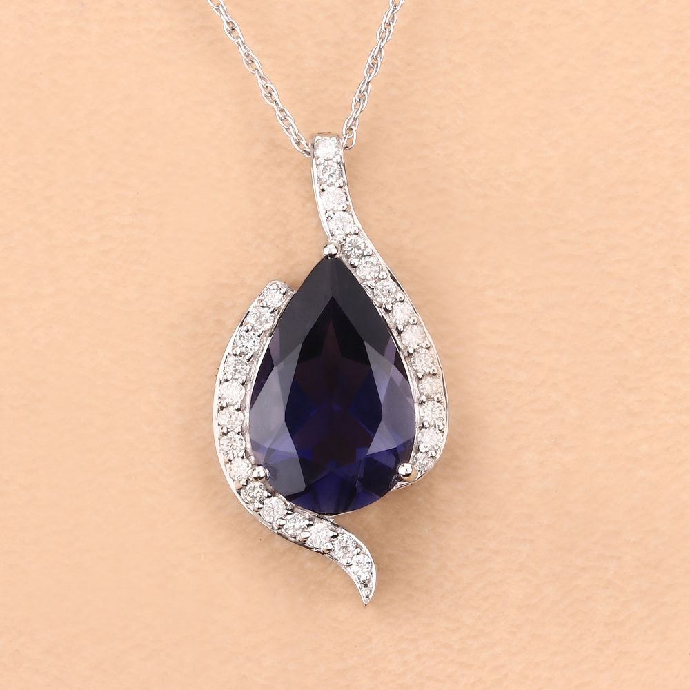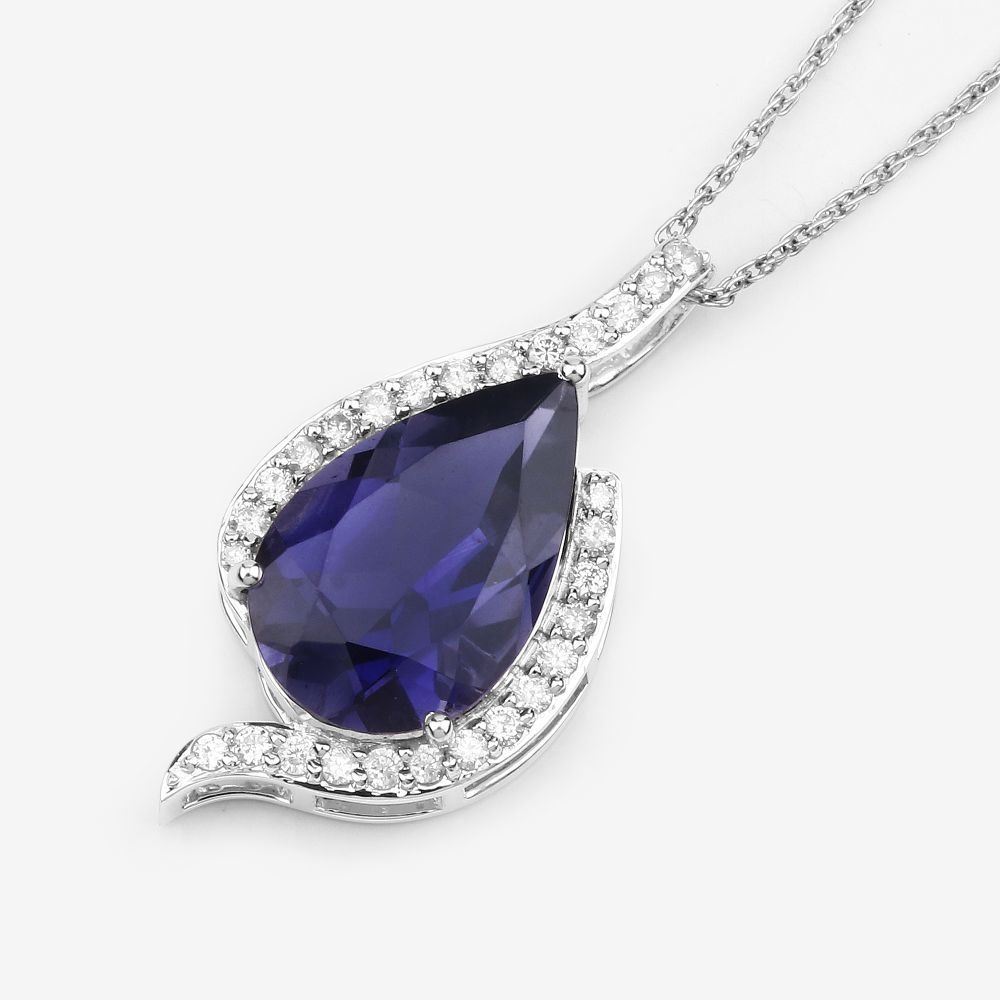 DESCRIPTION DETAIL: Genuine Iolite and Earth-Mined Diamond Pendant