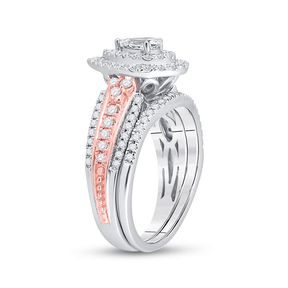14kt Two-tone Gold Pear Diamond Bridal Wedding Ring Band Set 1 Cttw