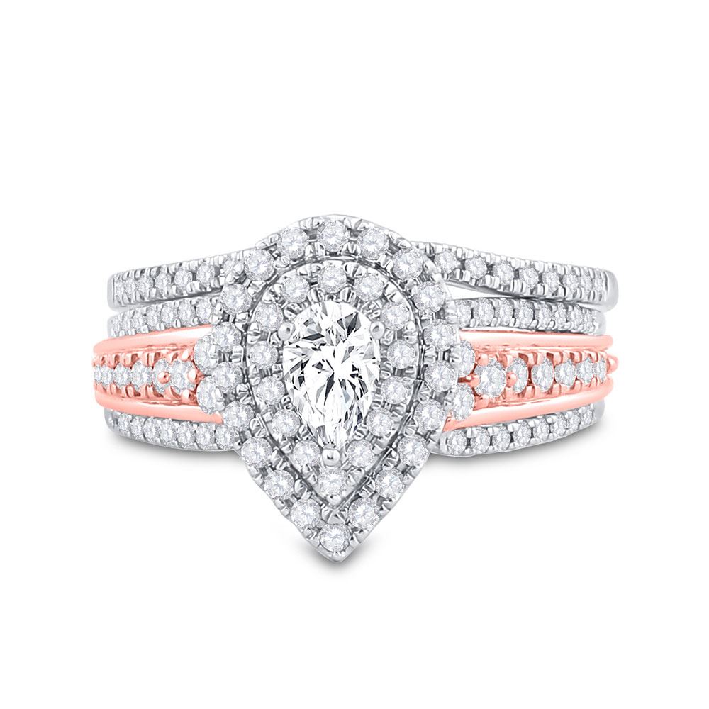 14kt Two-tone Gold Pear Diamond Bridal Wedding Ring Band Set 1 Cttw