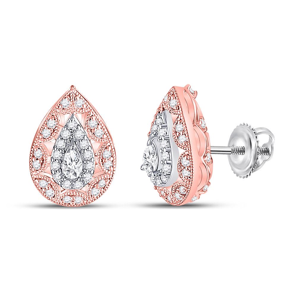 14kt Two-tone Gold Womens Pear Diamond Teardrop Halo Earrings 1/2 Cttw