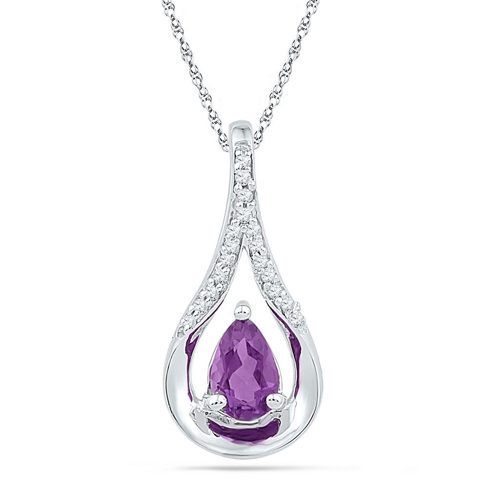 Sterling Silver Womens Pear Lab-Created Amethyst Solitaire Diamond Teardrop Pendant 1/2 Cttw