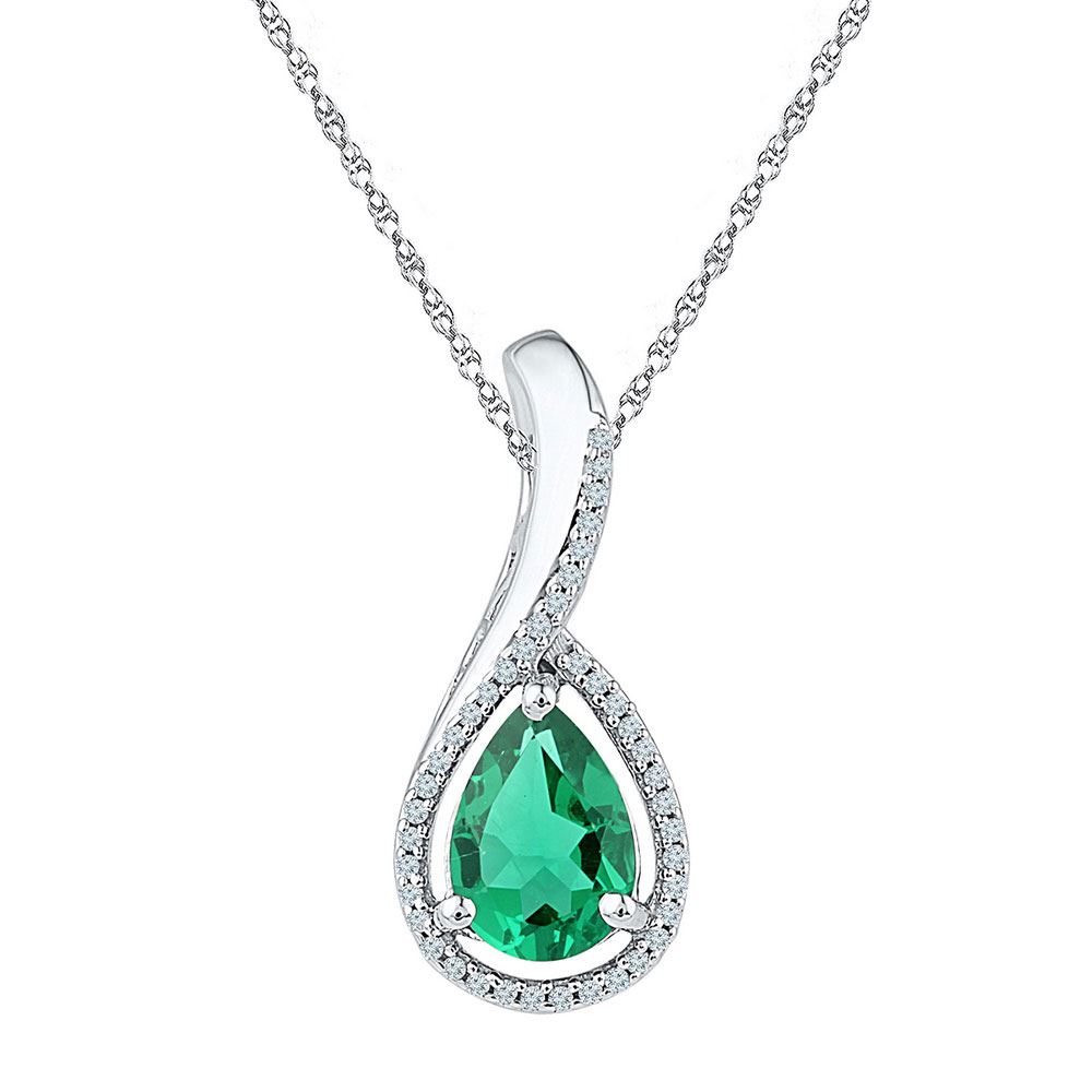 Sterling Silver Womens Pear Lab-Created Emerald Teardrop Pendant 2 Cttw