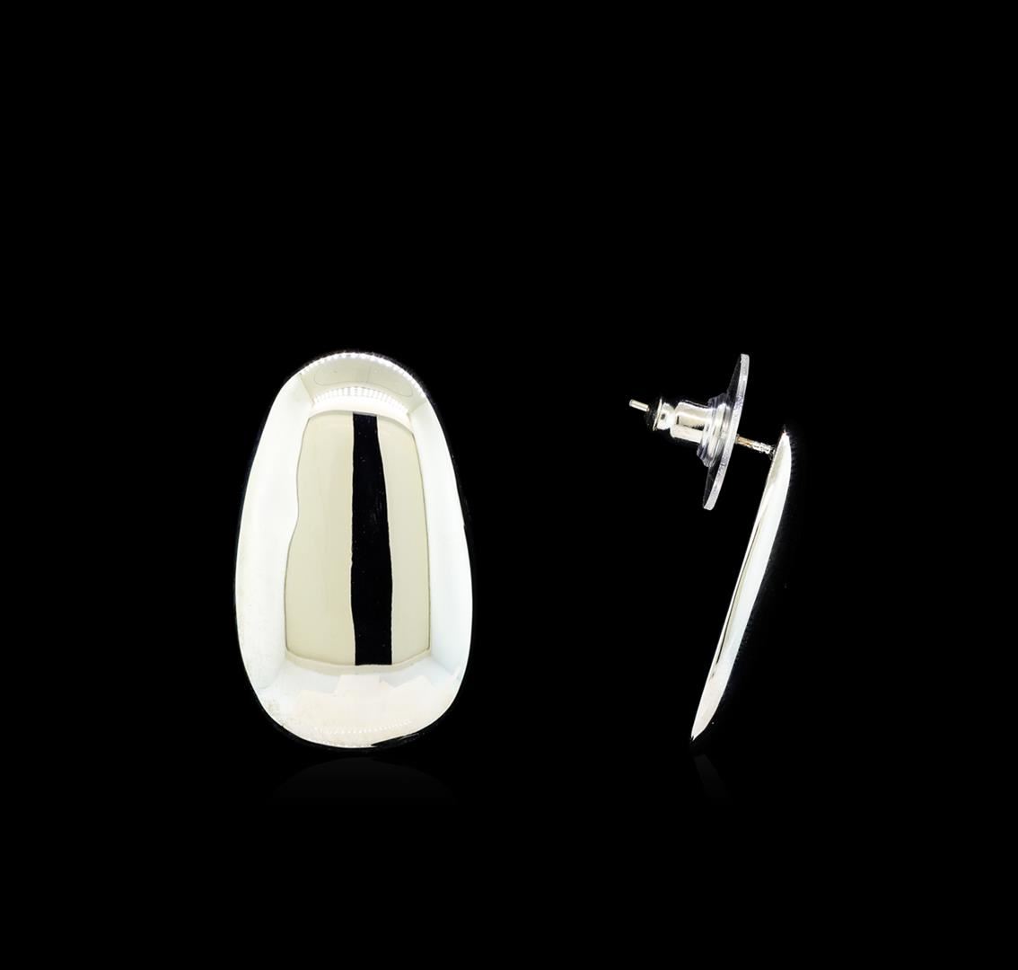 High end designer jewelry. Pear Shape Post Earrings - Rhodium. Rhodium. Silver. Post.