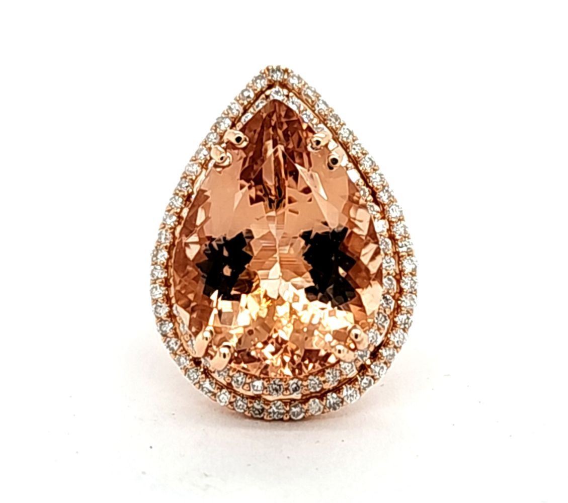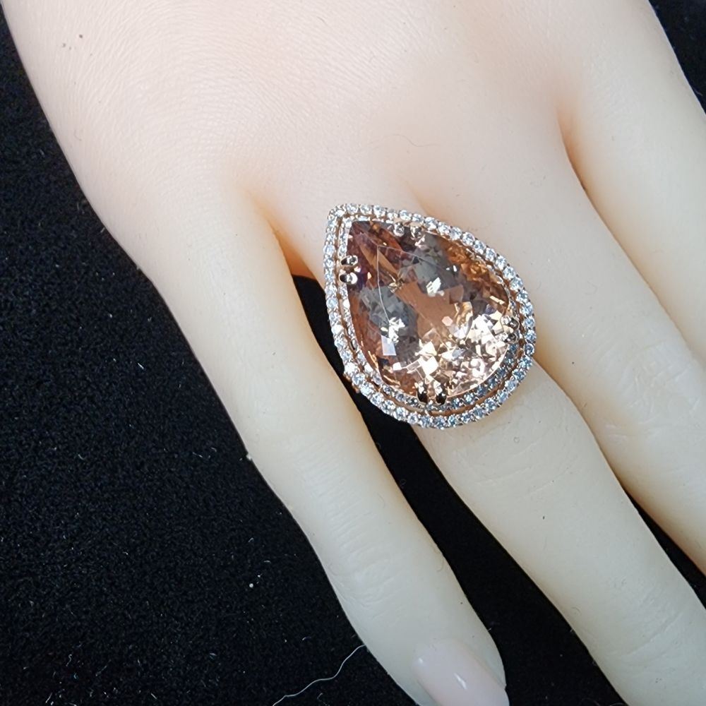 TITLE DESCRIPTION: Maximalist Pear-Shaped Morganite and Diamond Ring