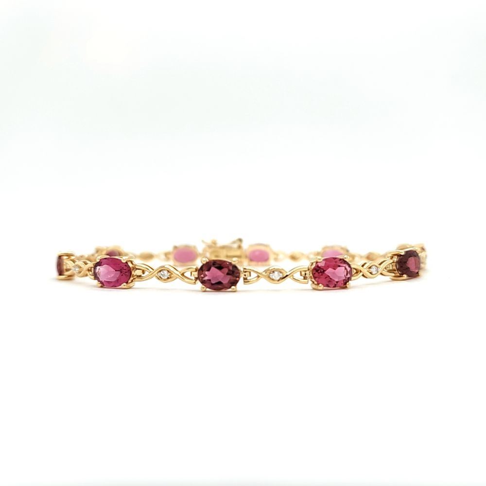Genuine Ruby and Earth-Mined Diamond Bracelet.& nbsp; This is a 14 karat yellow gold bracelet that features& nbsp; 6.25 carats of pear-cut rubies that are prong-set with .40 carats of round, brilliant-cut, H-I color, I-1 clarity diamonds.& nbsp; The bracelet is 7& quot; long and has hinged links for flexibility.& nbsp; It ends with a hidden box clasp and a safety clip.& nbsp; The bracelet is approximately 3.8 mm wide.& nbsp; This bracelet is certified and appraised for $14,040.00 estimated retail replacement cost.