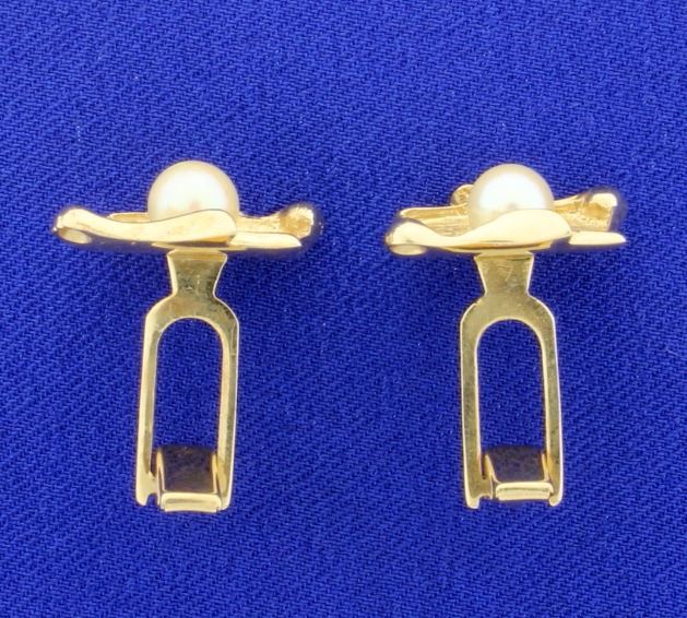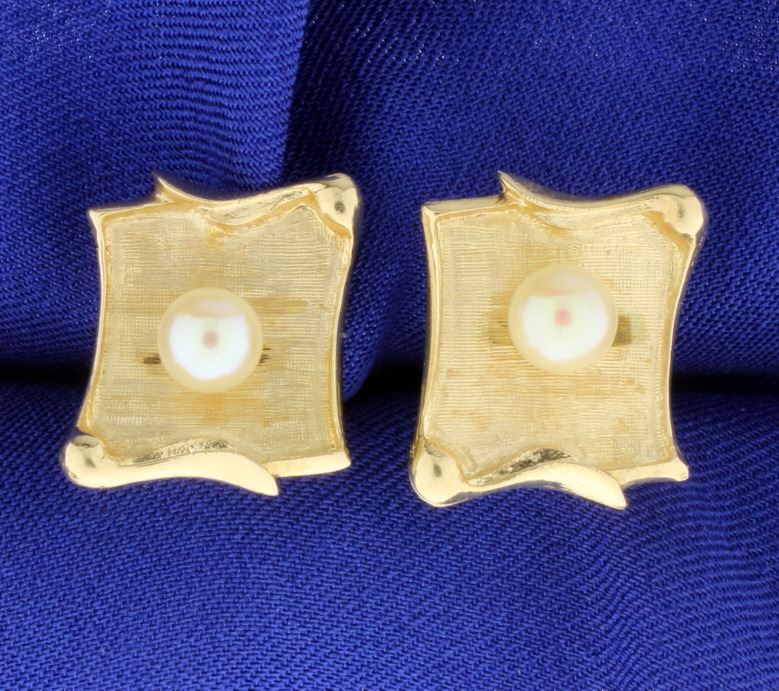 In 14K yellow gold, each pearl is 6mm round. The face of the cufflink is 3/4 inch x 5/8 inch. 8.2g