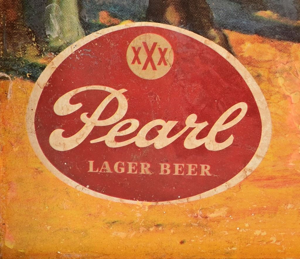 Frame measures 32" x 42.5". Does have some condition issues along top, still a great Pearl Breweriana collector item.
