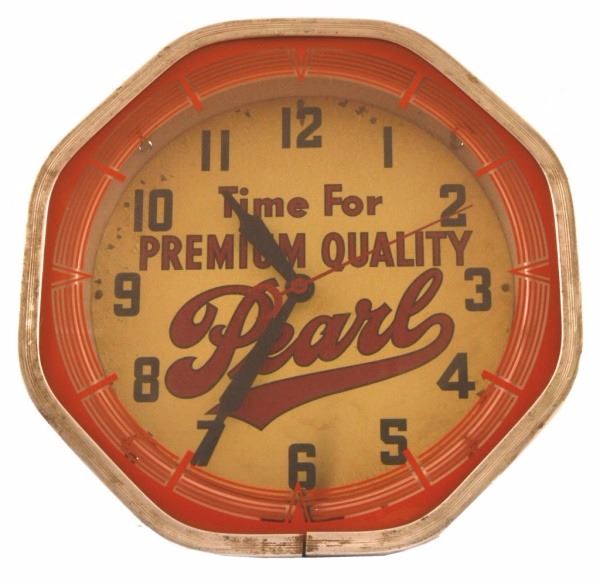 18-1/2" x 18-1/2" Scarce logo. Neon works, but clock does not.
