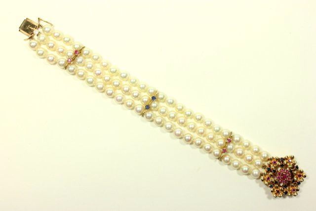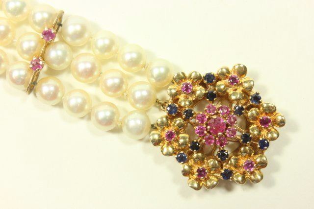 Clasp with ruby and sapphire. Approx. 7 1/4" L.