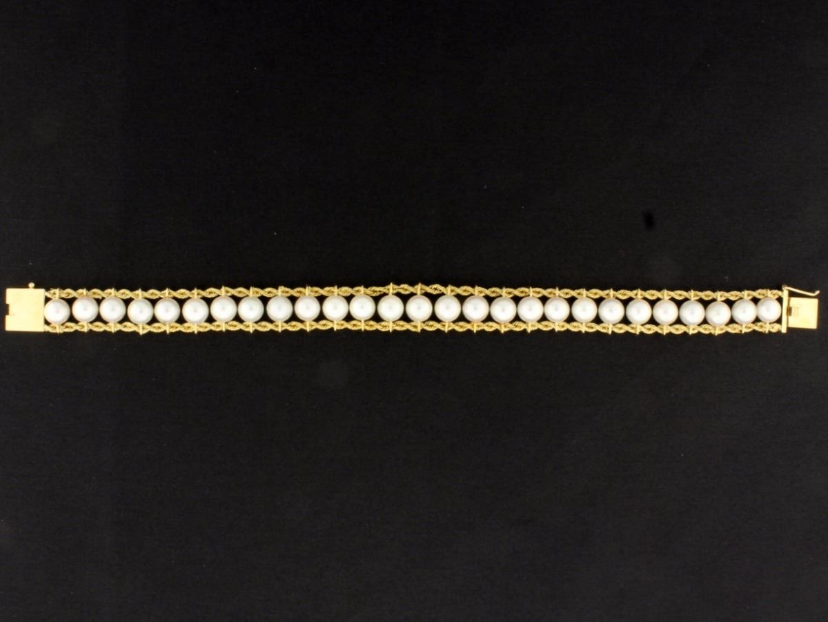 14K yellow gold , 7" long. 5.75mm pearls. 17.0g