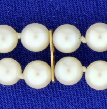 In 14K yellow gold, it is 7 1/2 inches long and contains 4-6mm pearls. 12.5g