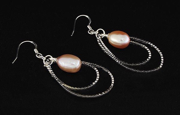 Pearl Dangling 3.80g Diamond Cut Design Silver Earring **|**|** 2.09 Inches Long Dangling Hook Earring with Purple Color Freshwater Pearls 7-8mm in Size ; MSRP: $100