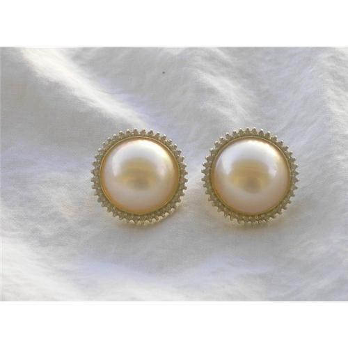 This a pair of genuine diamond and mabe pearl earring set in 14kt yellow gold. The pearls measure 17mm.
