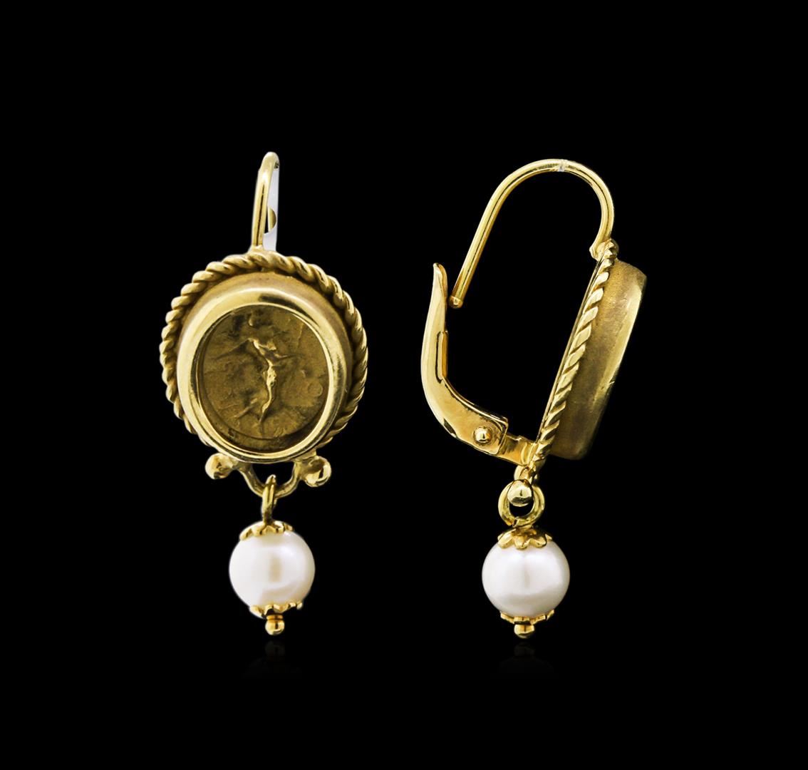 Pearl Earrings - 18KT Yellow Gold. 7.4 grams total weight; 2 pearls.