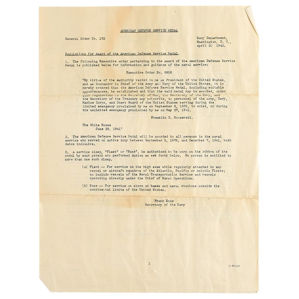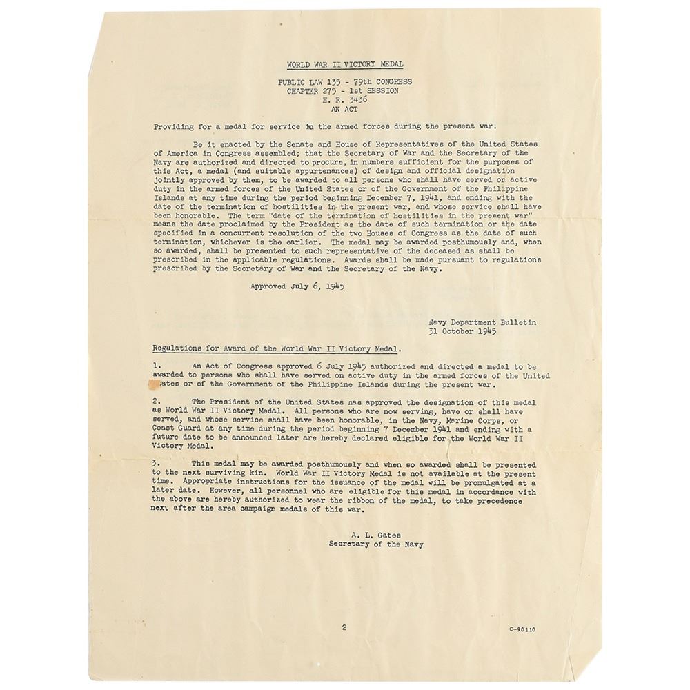 Williams was awarded the Purple Heart posthumously, and both his inscribed medal and presentation certificate are included, as is a Presidential Memorial Certificate, still in its original cardboard shipping tube. Also included are Williams’ posthumous post-war awards and copies of their certificates: American Defense Service with clasp, Asia-Pacific Campaign Medal, and World War 2 Victory Medal.