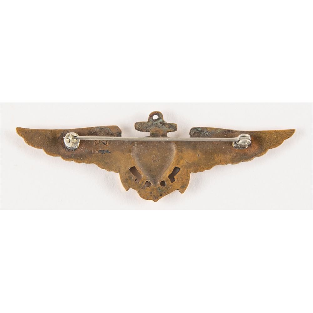 This is an extensive lot of items that spans Williams’ military career from his application to naval aviator school and his training at NAS Pensacola, to his billet aboard the ill-fated Battleship Arizona and the aftermath of his death during the Japanese attack on December 7, 1941. The first two items are one of Williams’ naval aviator wings, and his USN pilot certification cards, both of which were recovered from his stateroom by salvage teams working on the sunken battleship in the months after the attack. The wings were made by Hilborn-Hamburger, and have moderate surface damage on the front, and some deformation at the mounts for the pin back. The Aviator Certification cards, signed by Adm. Chester Nimitz, are still housed in their embossed, black leather wallet which exhibits extensive water damage, although both of the enclosed cards are still clear and legible.
