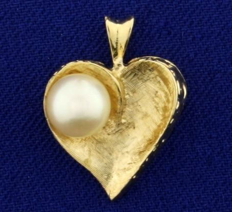In 14K Yellow Gold. Contains a 7mm Pearl with great color and luster. 3/4" long with bale. 2.7g