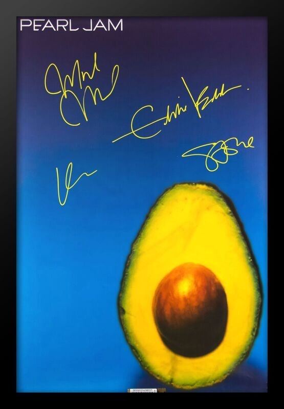 Pearl Jam "Avocado" framed autographed poster. Poster autographed by Eddie Vedder, Stone Gossard, Mike McCready & Dave Krusen. This item comes with a Certificate of Authenticity from a third party authenticator. This Certification of Authenticity does not imply that the item will be certified by any other rival authentication companies. The accompanied certification is the only certification the auction company can confirm. These items are being sold as collectable pieces and there is no guarantee that this item can be resold on any online marketplace. Each of these companies has their own policies and politics.