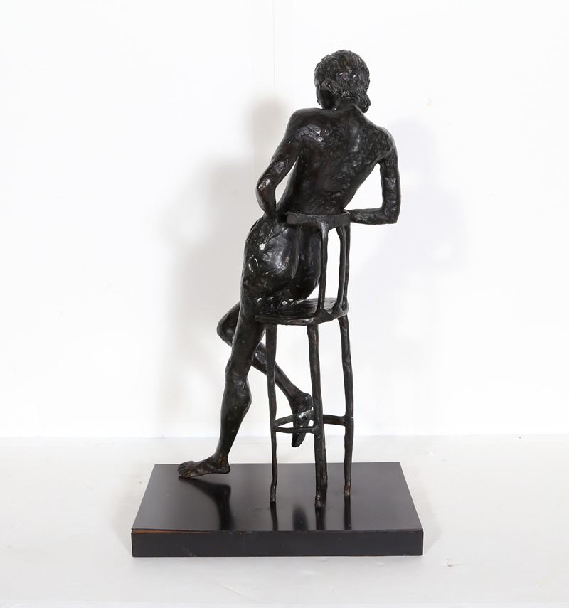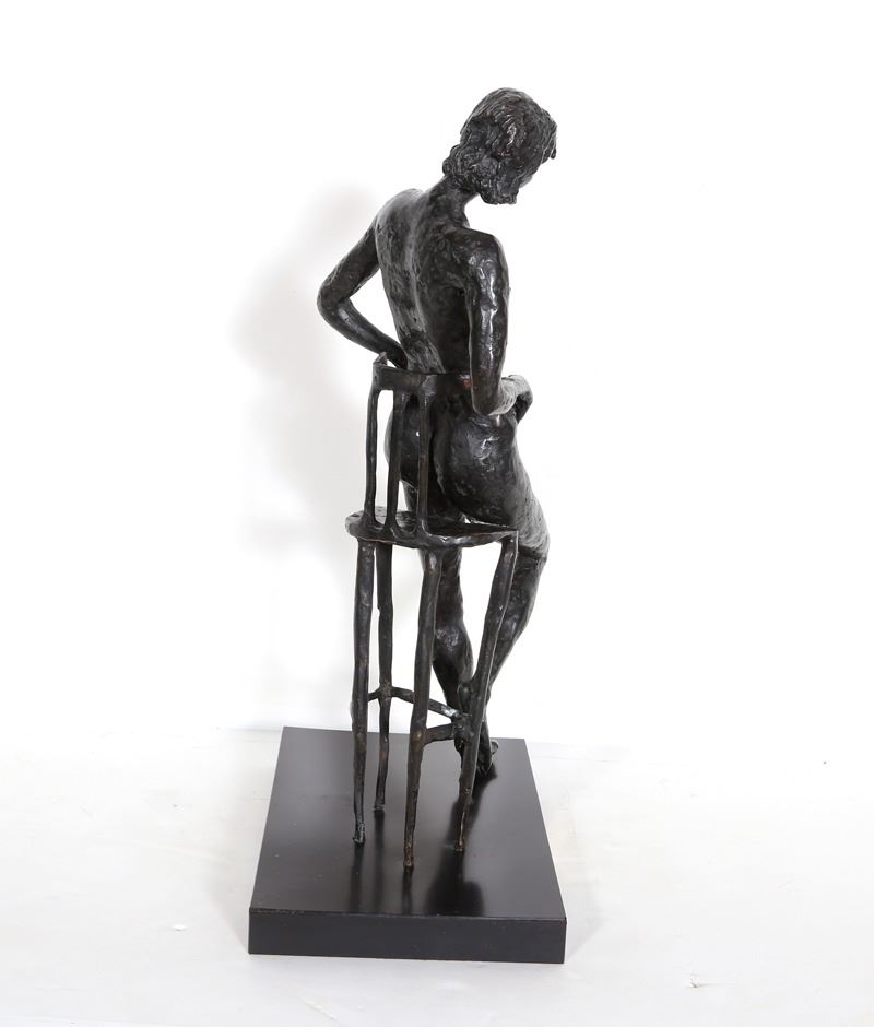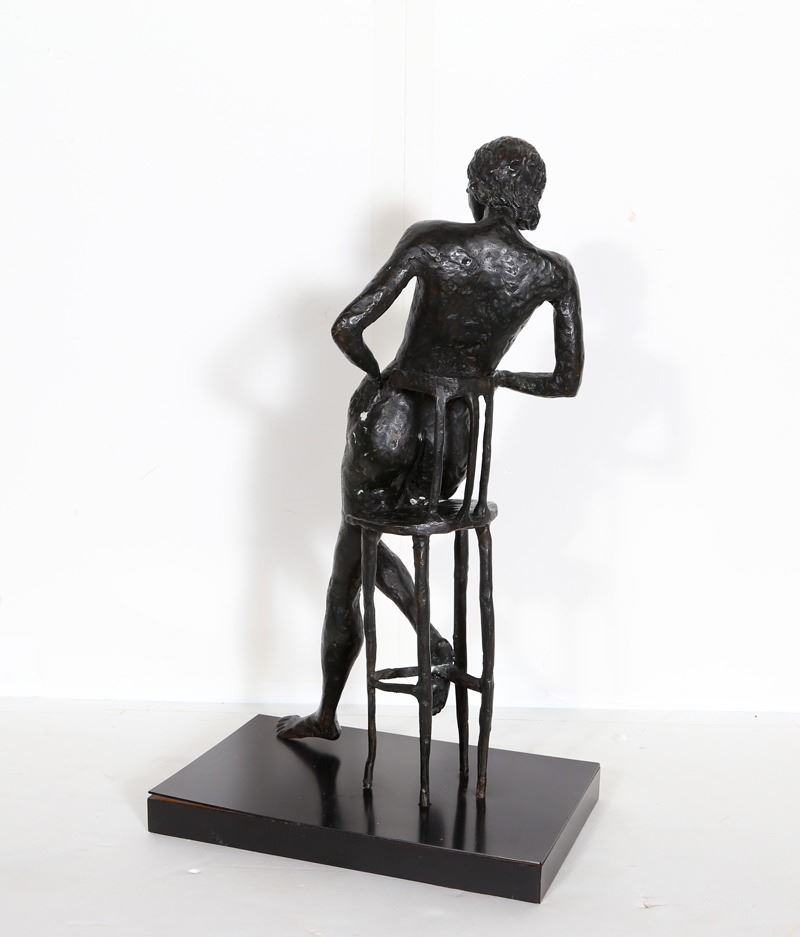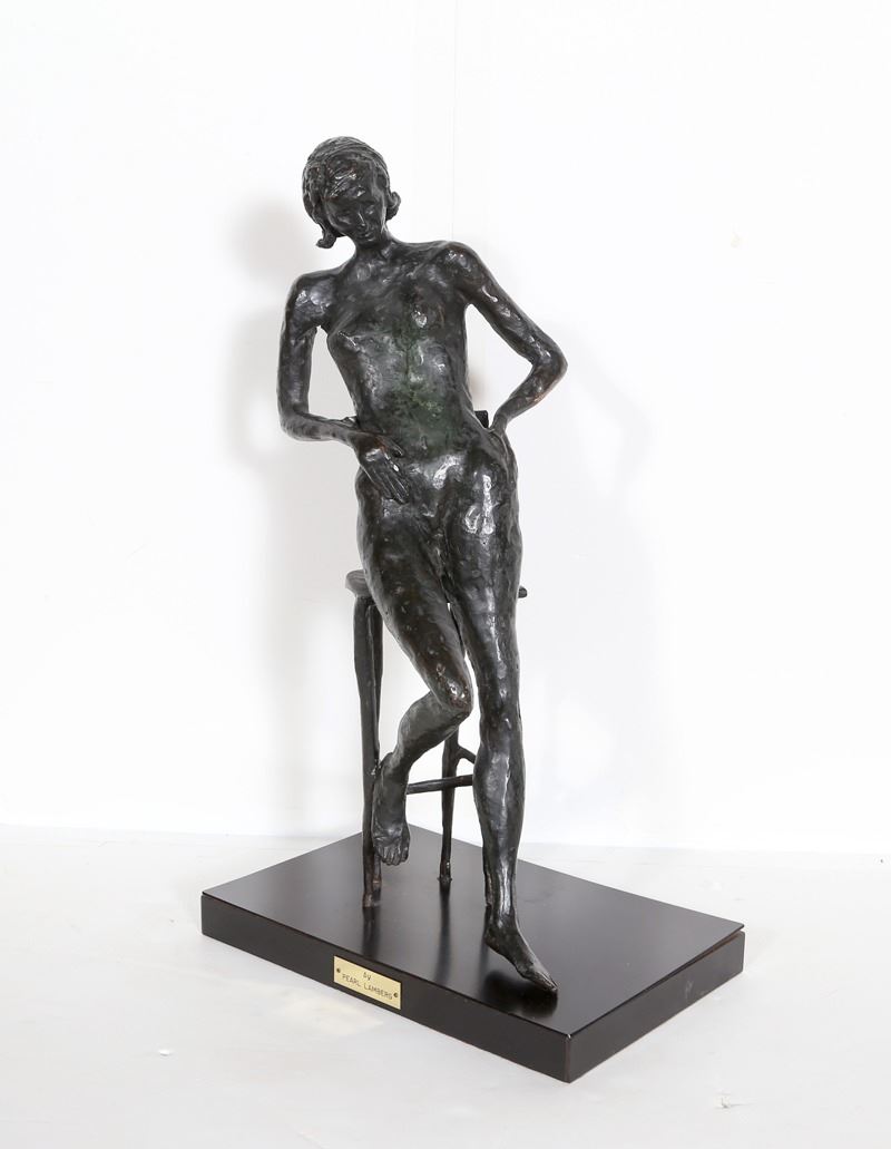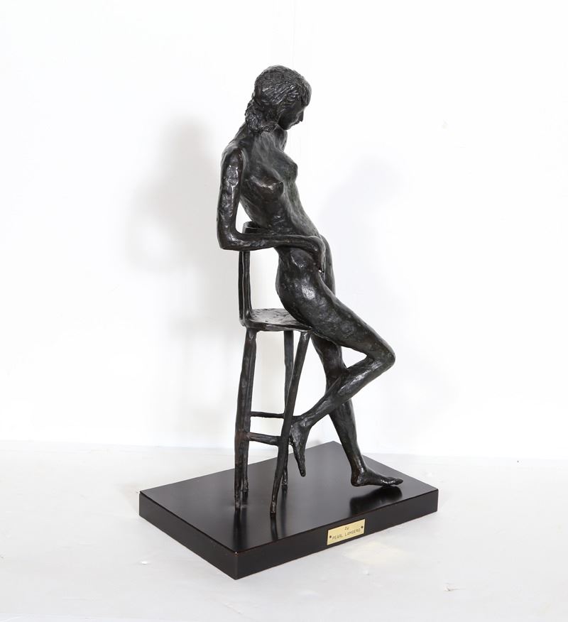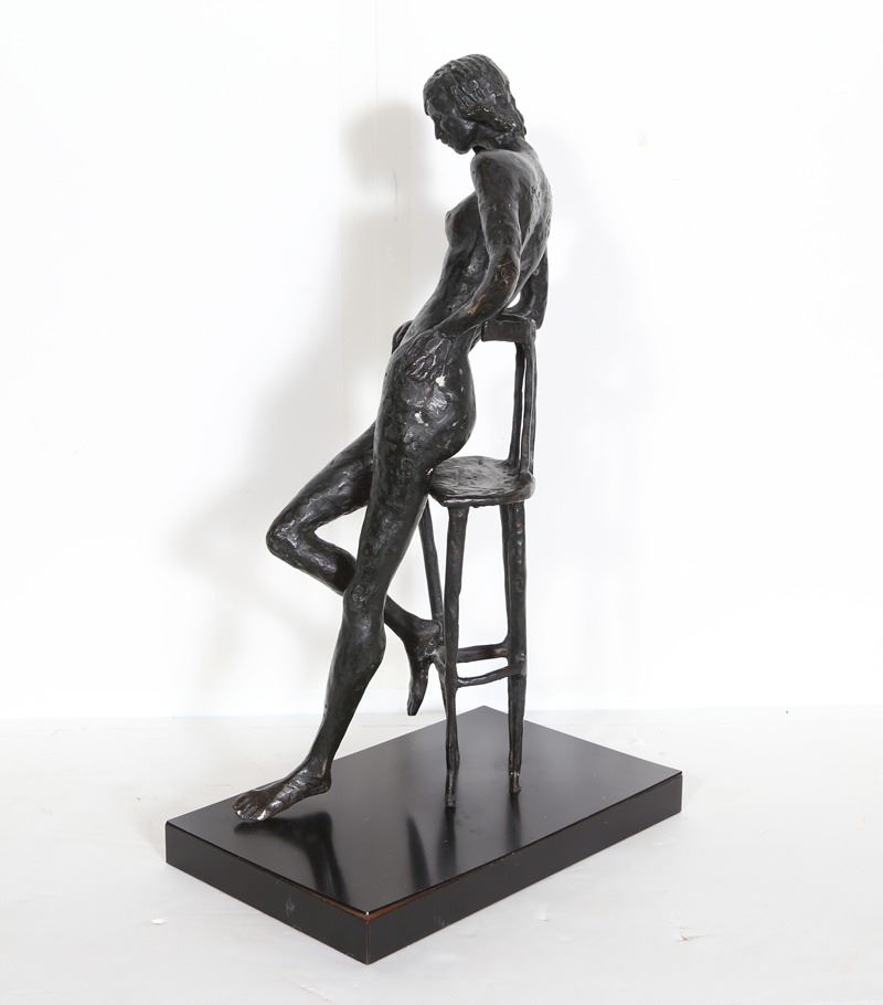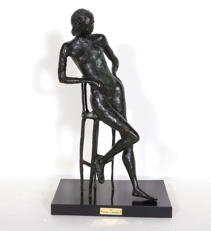 Pearl Lamberg, Nude on Chair, Bronze Sculpture